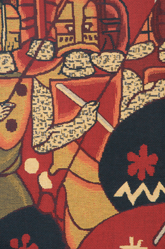 | History: | Godfrey of Bouillon Belgian Tapestry is set in the time period of (c. 1060, – 18 July 1100) Godfrey of Bouillon was a Duke of Lower Lotharigen (1089-1100) and a medieval knight who was one of the leaders of the First Crusade from 1096 until his death. |
