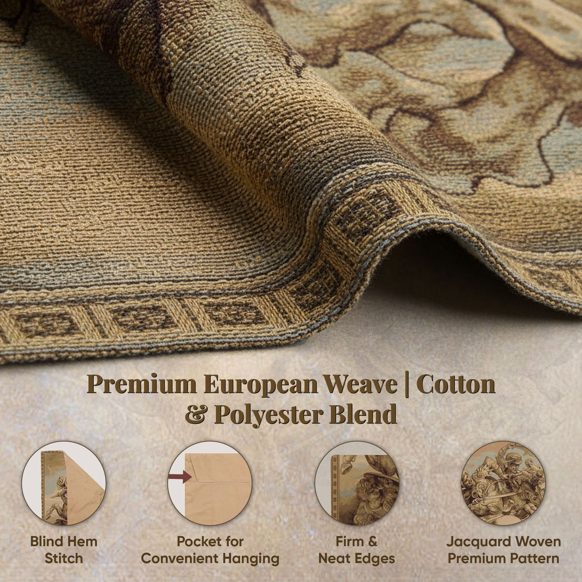 | History: | The Battle of Anghiari is an Italian jacquard wall tapestry. The artwork is from a lost painting est. 1505 by Renaissance Master Leonardo da Vinci. The composition of the central section is best known through a drawing by Peter Paul Rubens in the Louvre, Paris. This work, dating from 1603 and known as The Battle of the Standard, was based on an engraving of 1553 by Lorenzo Zacchia, which was taken from the painting itself or possibly derived from a cartoon by Leonardo. The Battle of Anghiari was fought on 29 June 1440, between the forces of Milan and those of the Italian League led by the Republic of Florence in the course of the Wars in Lombardy. The battle was a victory for the Florentines, securing Florentine domination of central Italy. |