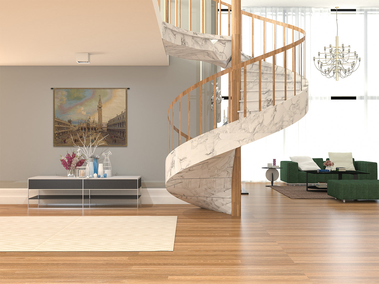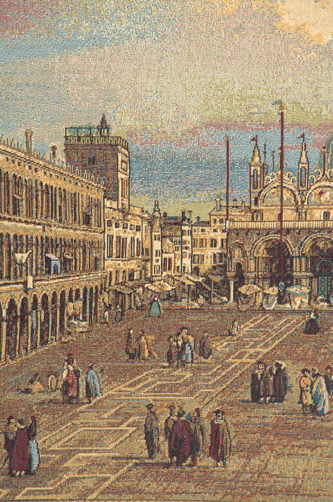 | History: | San Marco Square is an Italian jacquard woven wall tapestry. The artwork is from the painting Piazza San Marco with the Basilica (circa 1723-1724) by Canaletto. Piazza San Marco often known in English as, St Mark's Square, is the principal public square of Venice, Italy, where it is generally known just as the Piazza. |