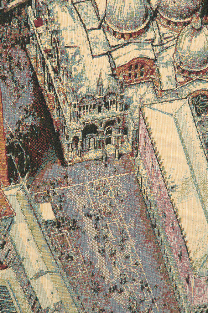 | History: | Venice from Above is an Italian jacquard wall tapestry. It displays a stunning aerial view of the Piazza San Marco and the adjoining harbor. The bell tower and Basilica are the major landmarks in the scene. |
