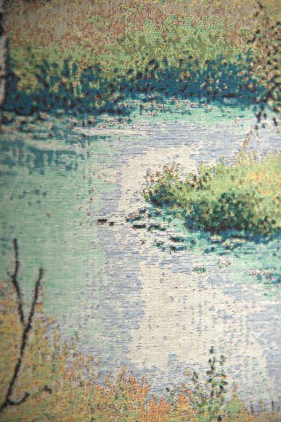 | History: | Echoing the natural setting and style of a Claude Monet painting, our Brook Between the Trees Stretched Wall Tapestry is more realistic than impressionistic. Woven in the calming hues of blue, green and white found in nature, the tapestry brings both beauty and color to your most forlorn walls. This landscape tapestry makes a lovely addition to a peaceful study or bedroom. It arrives ready to hang and can be enjoyed as soon as it is delivered. It is ideal hanging in a spot where its vertical orientation will be accommodated. Carefully woven from a soft cotton/poly/ viscose mix. Imported. |
