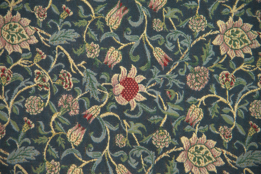 | History: | Fleurs de Morris Belgian tapestry throw is inspired by the "Tree of Life" images by William Morris. Featured are the swirling flowers and leaves pattern classic to William Morris' work. |