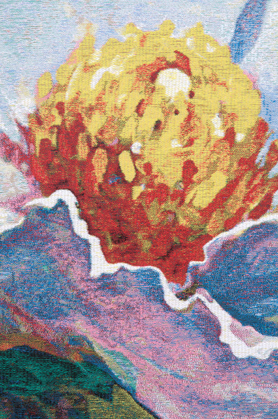 | History: | A Time To Dream is a jacquard woven Belgian tapestry portraying the work of Simon Bull. A close view of an exquisitely detailed flower, this work exudes a sophisticated color palette of green and white, and subtler reds and blues. The background merges on the border of realism and dream state, which is a hallmark of Bull's work. Bull realized the effect that his works had on people during an exhibition in London when he saw that colors and imagery were affecting people at their emotional center. That vibrant color and emotion is what brought him widespread international acclaim and produces the signature look that is a style all his own. British-born Simon Bull has become one of the world's most compelling living artists. His work is collected by royalty, presidents, celebrities, and museums as well as a growing number of private collectors who find their lives enriched by the color and emotion of his work. This piece will impress all of your guests with its vibrant beauty. |