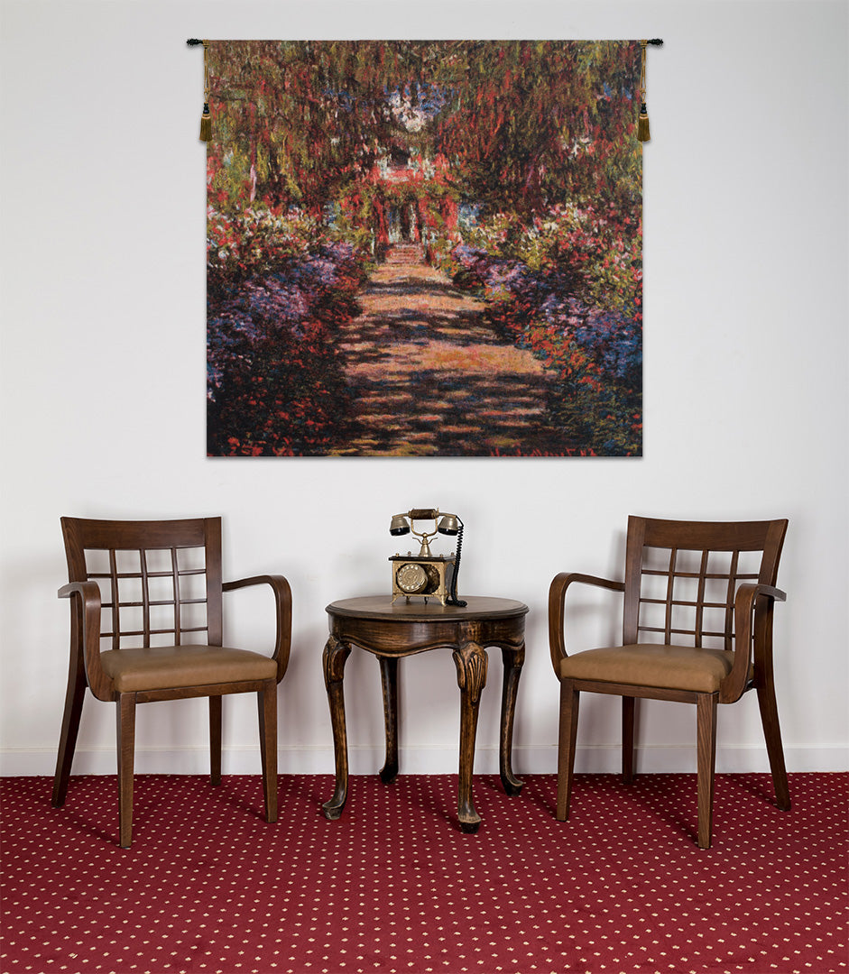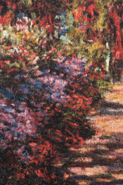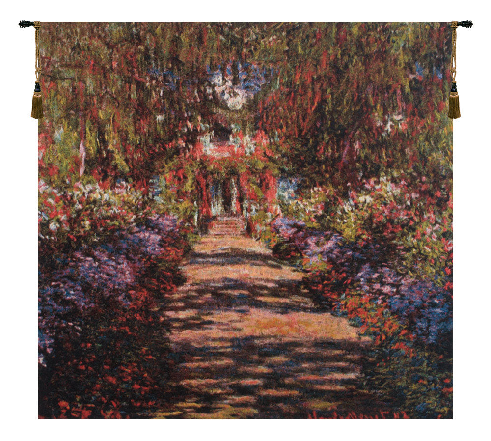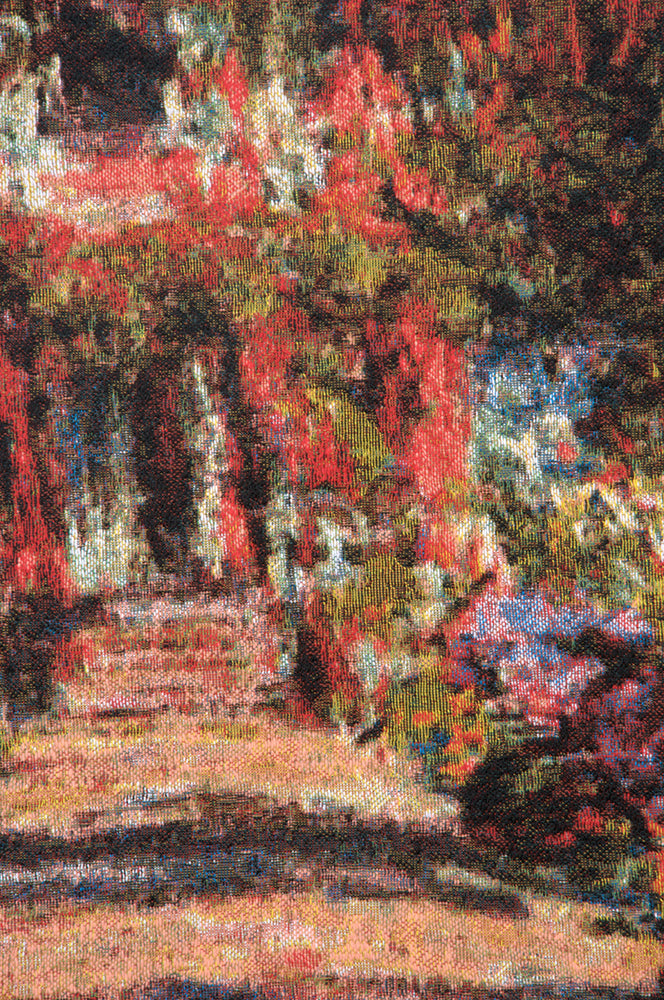 | History: | Allee de Monet is a jacquard woven Belgian impressionist tapestry of Monet's famous; "Main Path through the Garden at Giverny", created in 1901. The rich colours and textures lend to the imagery a sense of looking into another world so vividly realistic you almost get a sense of the the fragrant fresh air of the fully bloomed path as if you were to reach your hand through you could pick a blossom. Incorporate this fine art piece into your home decor motif to add a sense of vitality to your surroundings. |