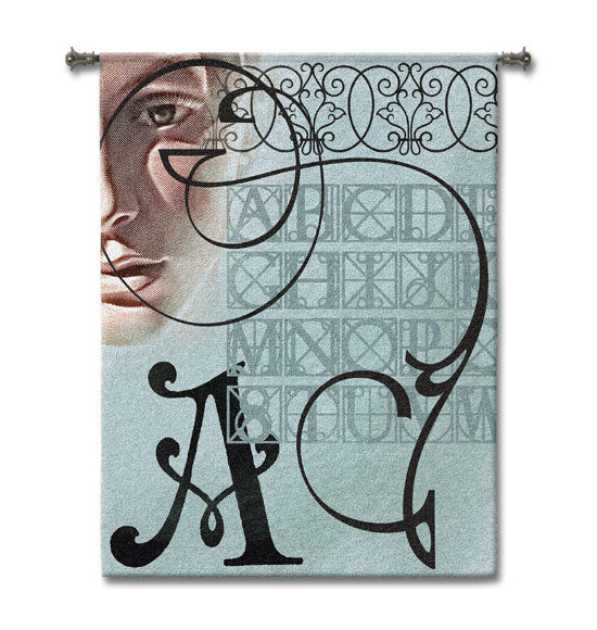 | History: | Alpha Man tapestry is from a painting/artwork of Acorn Studio. This modern tapestry features a man's face set next to a calligraphy themed background. |