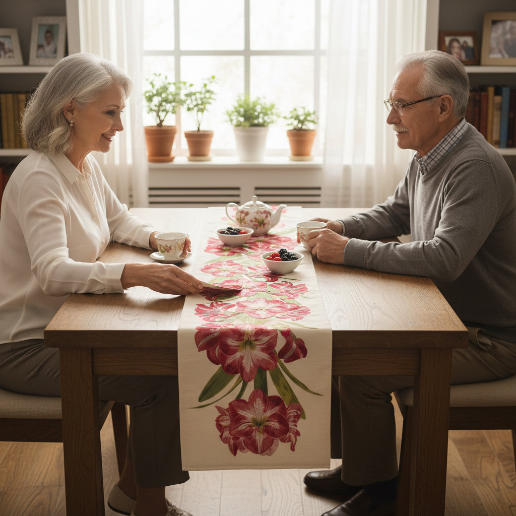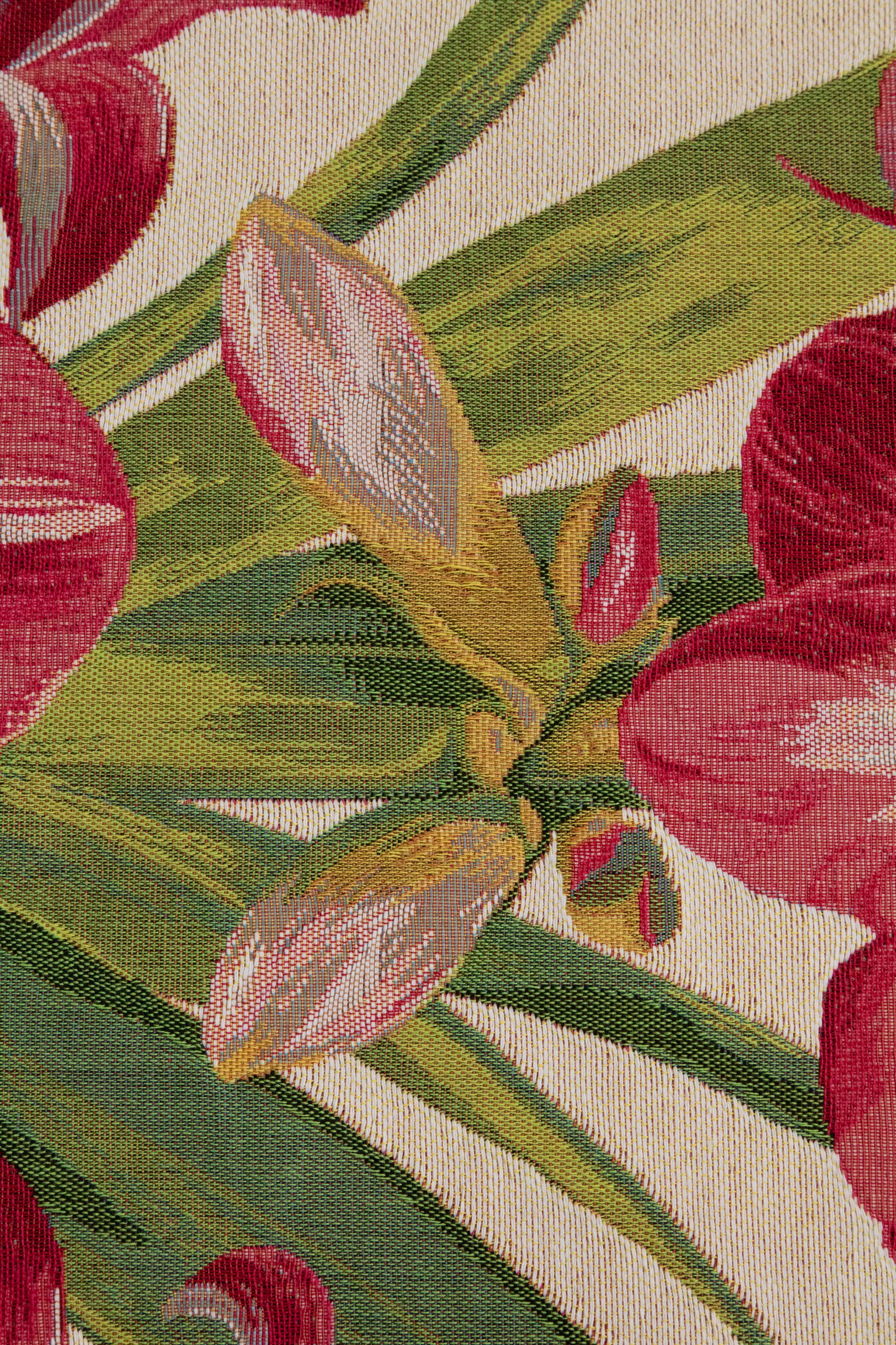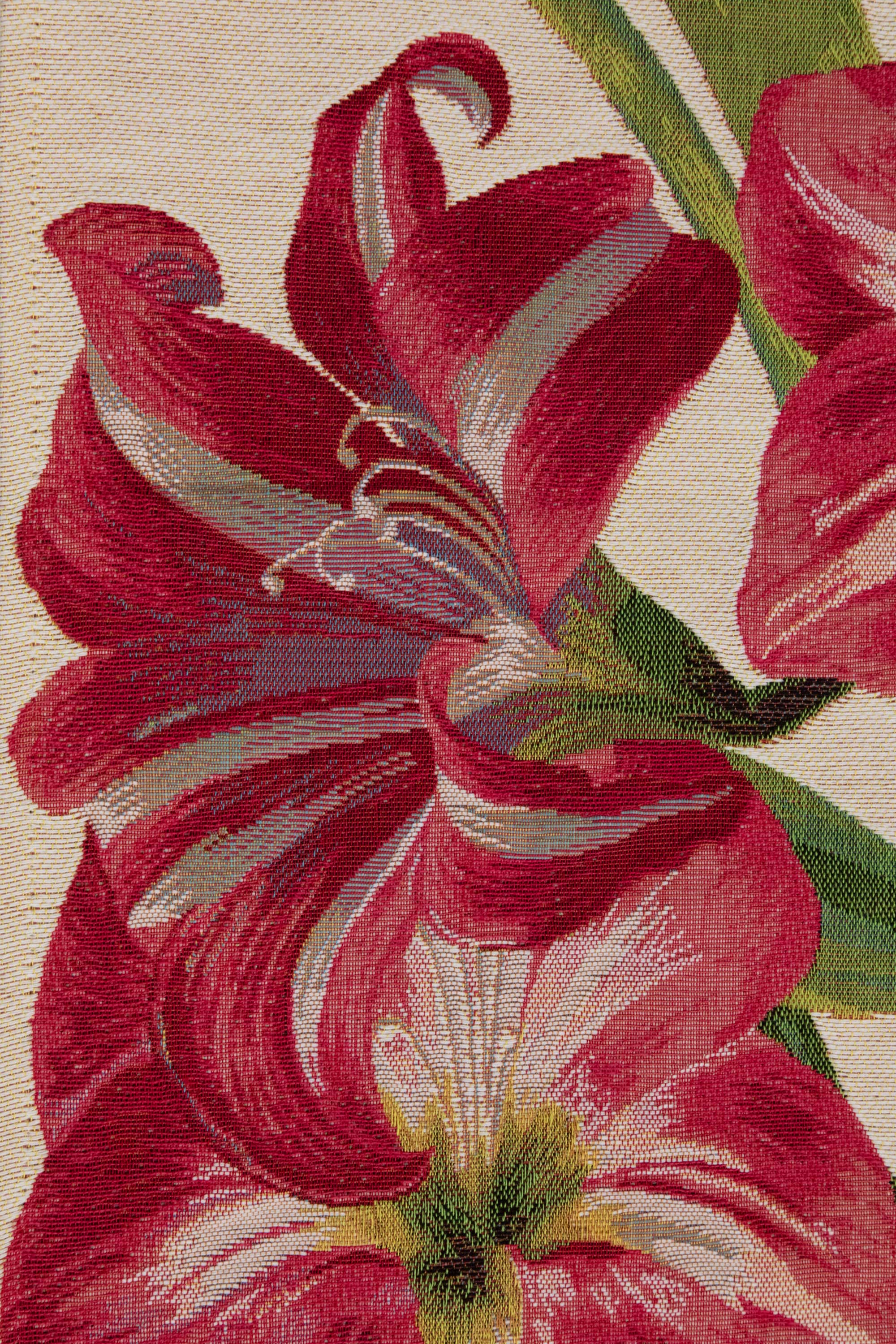 | History: | This jacquard table runner is a beautiful composition of Amaryllis to dress a table. Woven in cotton, it is hemmed all around. |