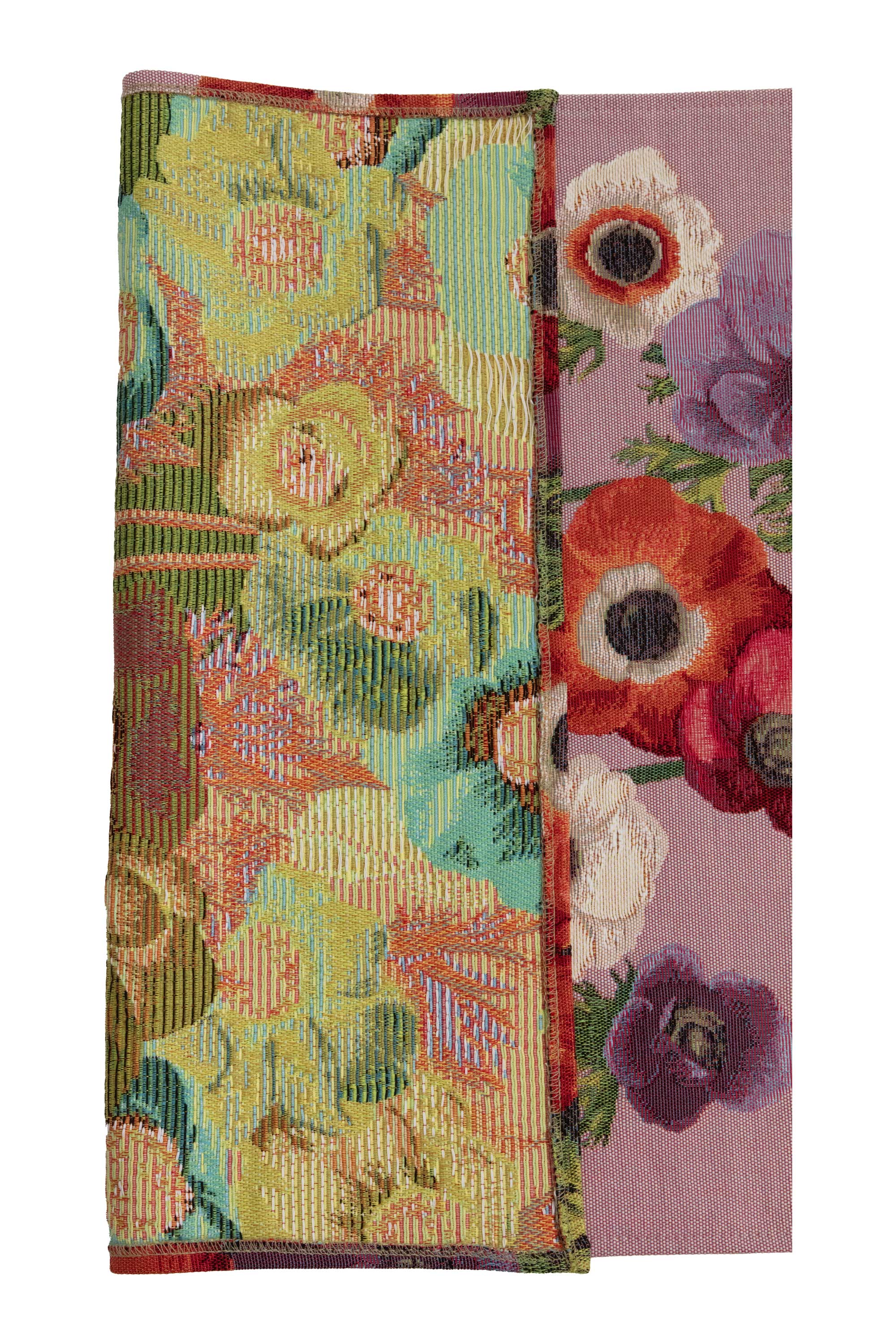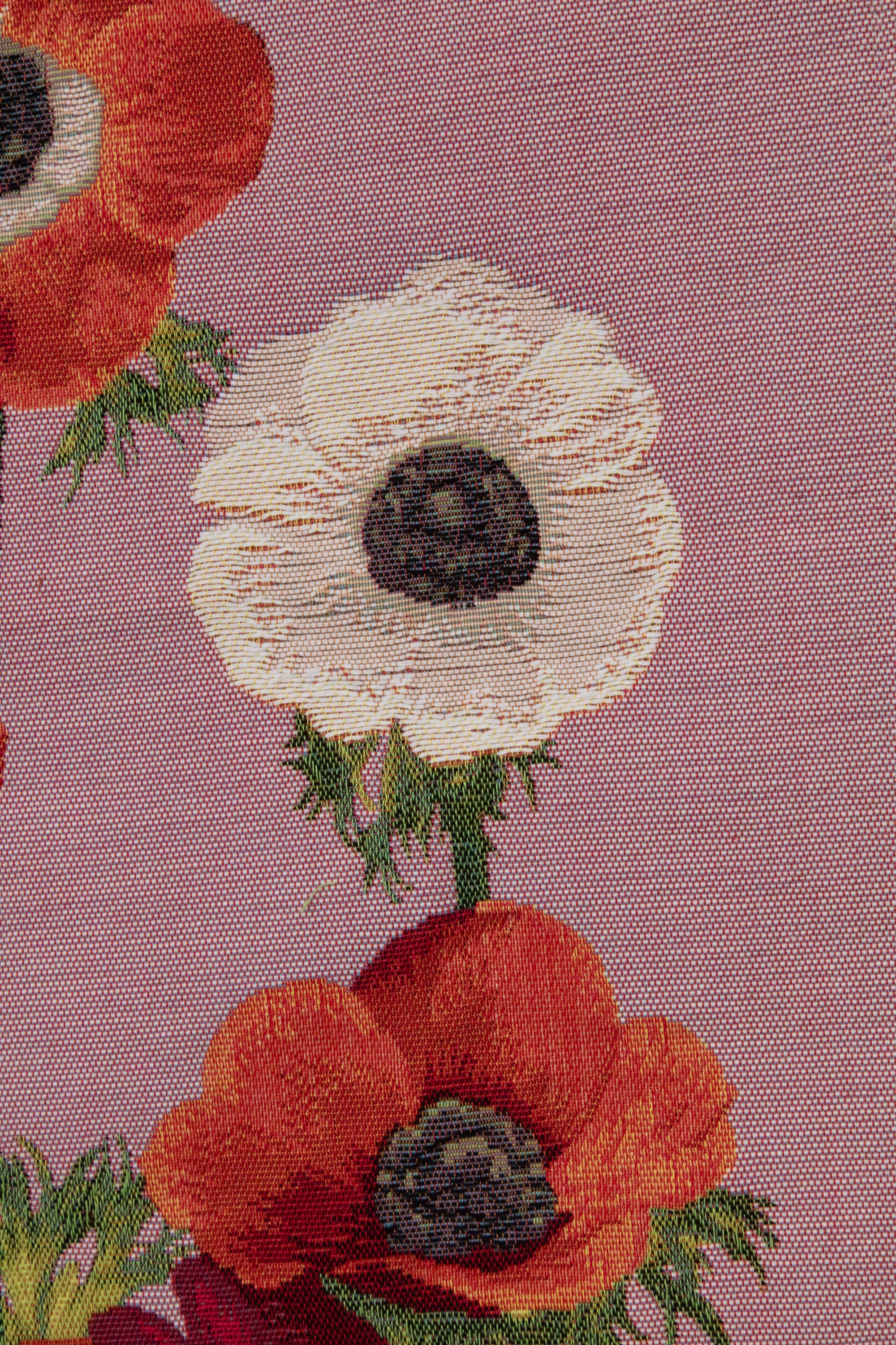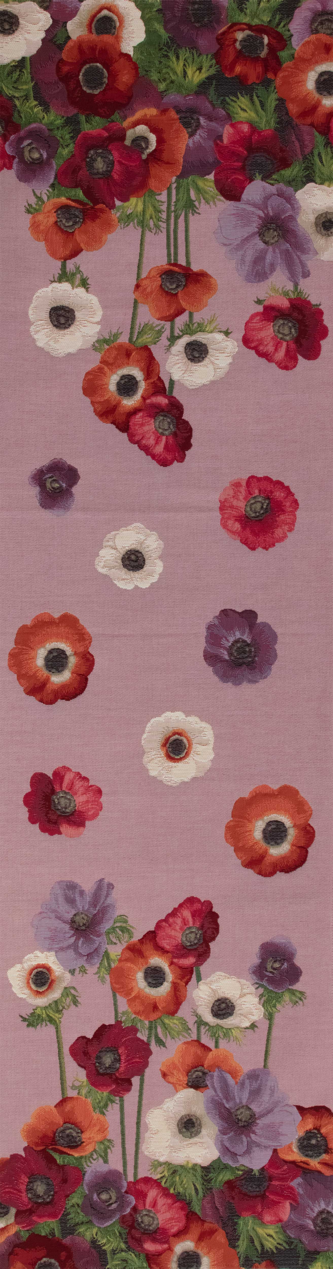 | History: | These magnificent anemone beds, also called "wind flowers", are going to brighten your home with their warm tones, plum, yellow and lilac. This jacquard table runner is woven in cotton, it is hemmed all around. |
