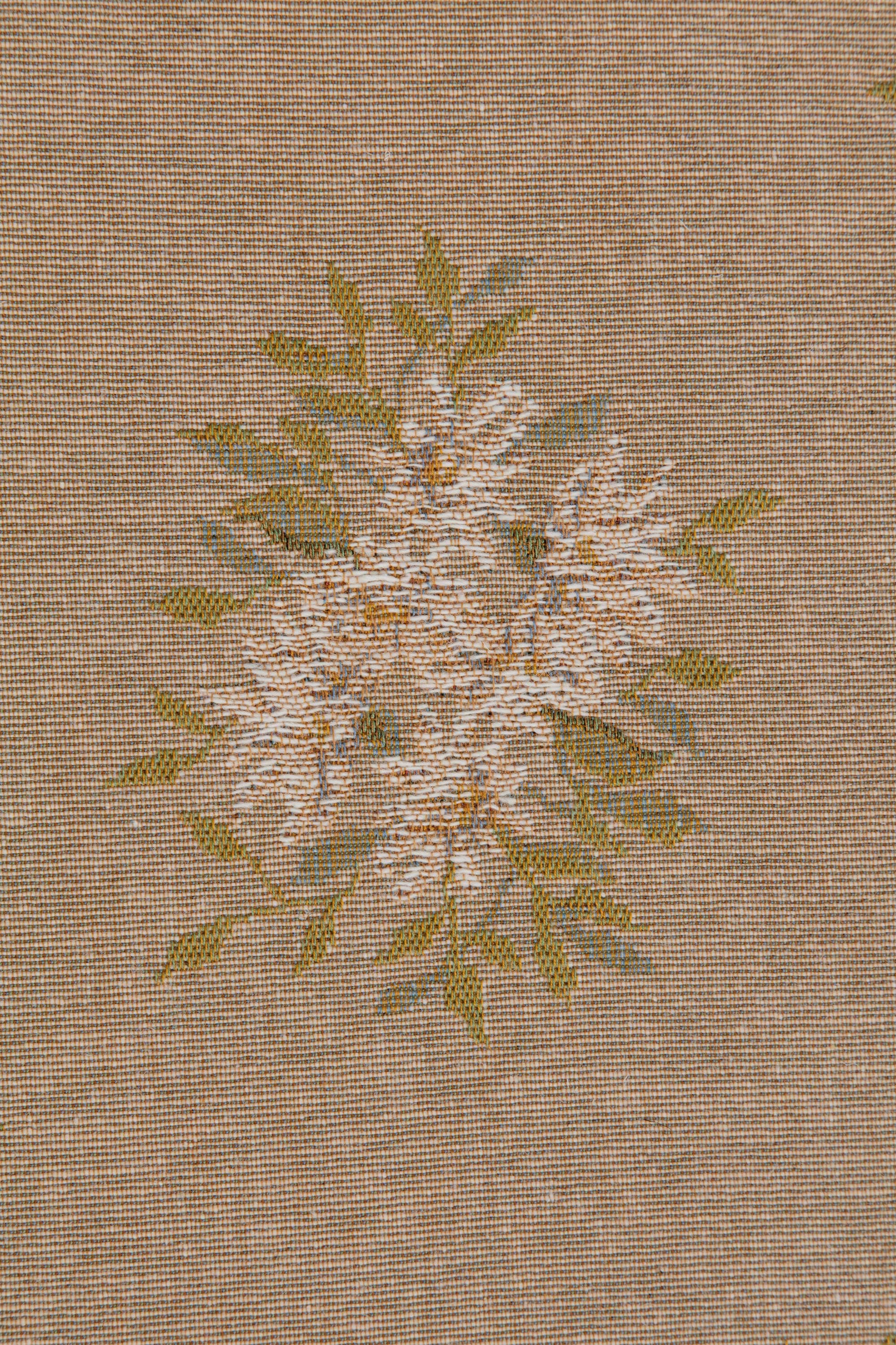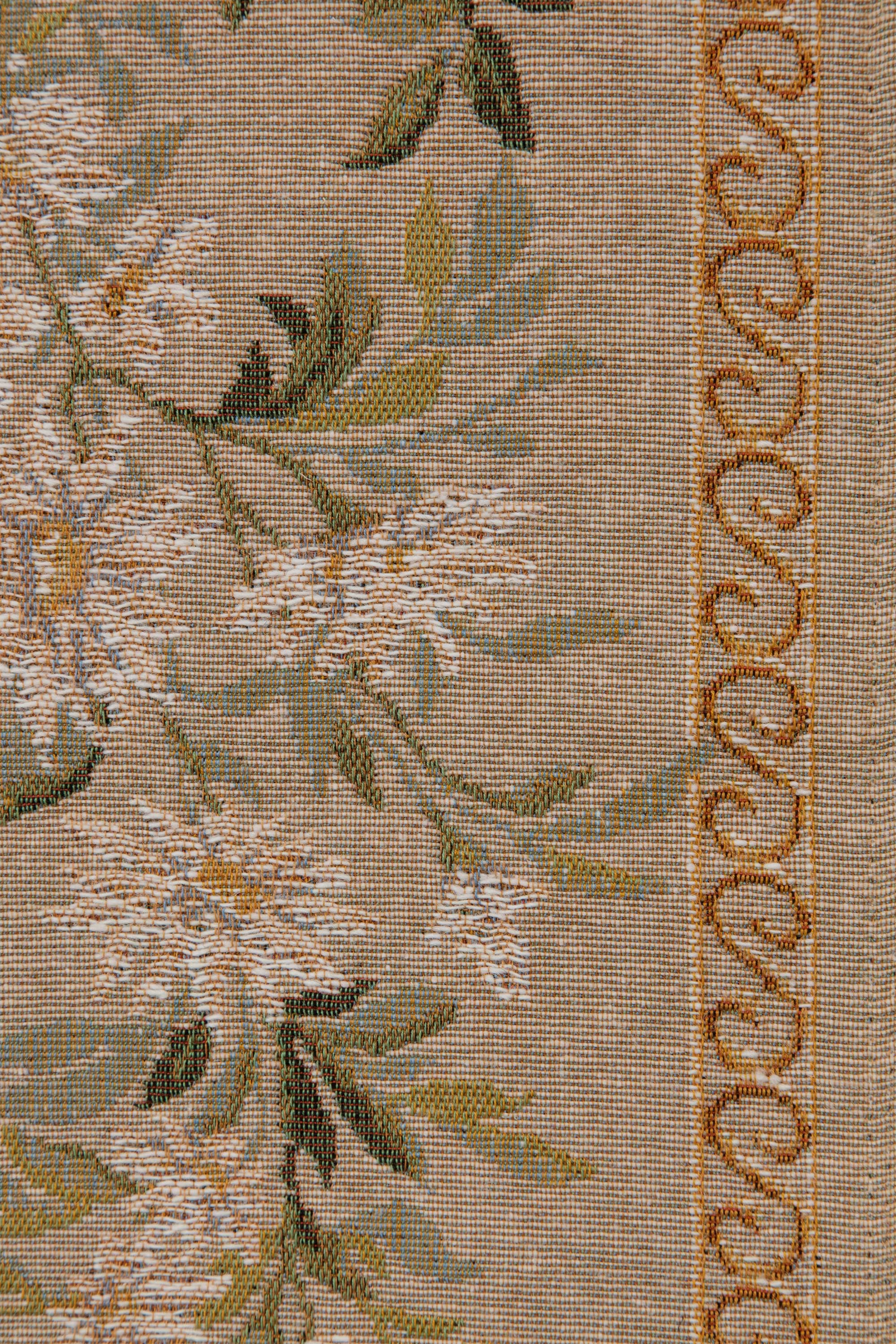 | History: | This table runner tapestry, Aubusson Light, shows elegant garlands of flowers on a light background. It is woven in wool, lined with a plain beige cotton fabric and has two tassels. |