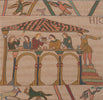 | History: | This decorative European jacquard tapestry cushion cover, Bayeux Le Repas, is an extract of Queen Mathilde's Bayeux tapestry. The original, some 230 feet long, is in the Bayeux museum in Normandy. It describes how England was conquered by Normans. Also known as L'Embarquement. Here King Harold prepares for his trip. He enjoys his last meal before taking the open sea in direction of Normandy. Companion piece #902 Bayeux L'Embarquement. |