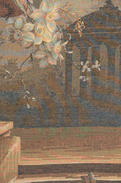 | History: | Bouquet at the Gazebo: this jacquard wall art tapestry is an extract from an 18th century painting from France's most renowned botanical painter, Pierre-Joseph Redoute. His work was patronized and highly prized by both Marie-Antoinette and Josephine Bonaparte. The background is a depiction of the shaded gardens of Trianon in Versailles. This tapestry is a companion piece with #8893, Kiosk and Flowers. |