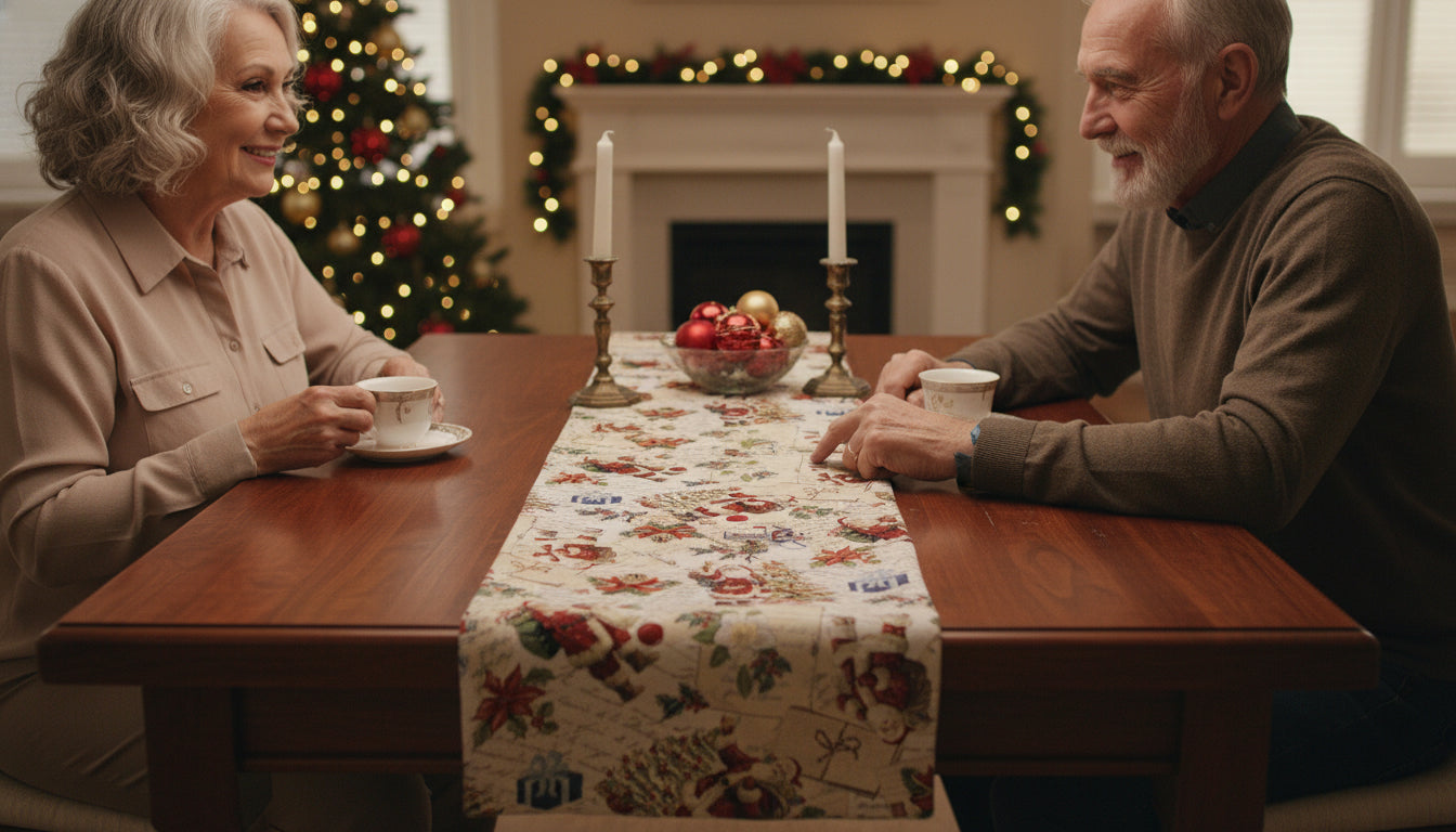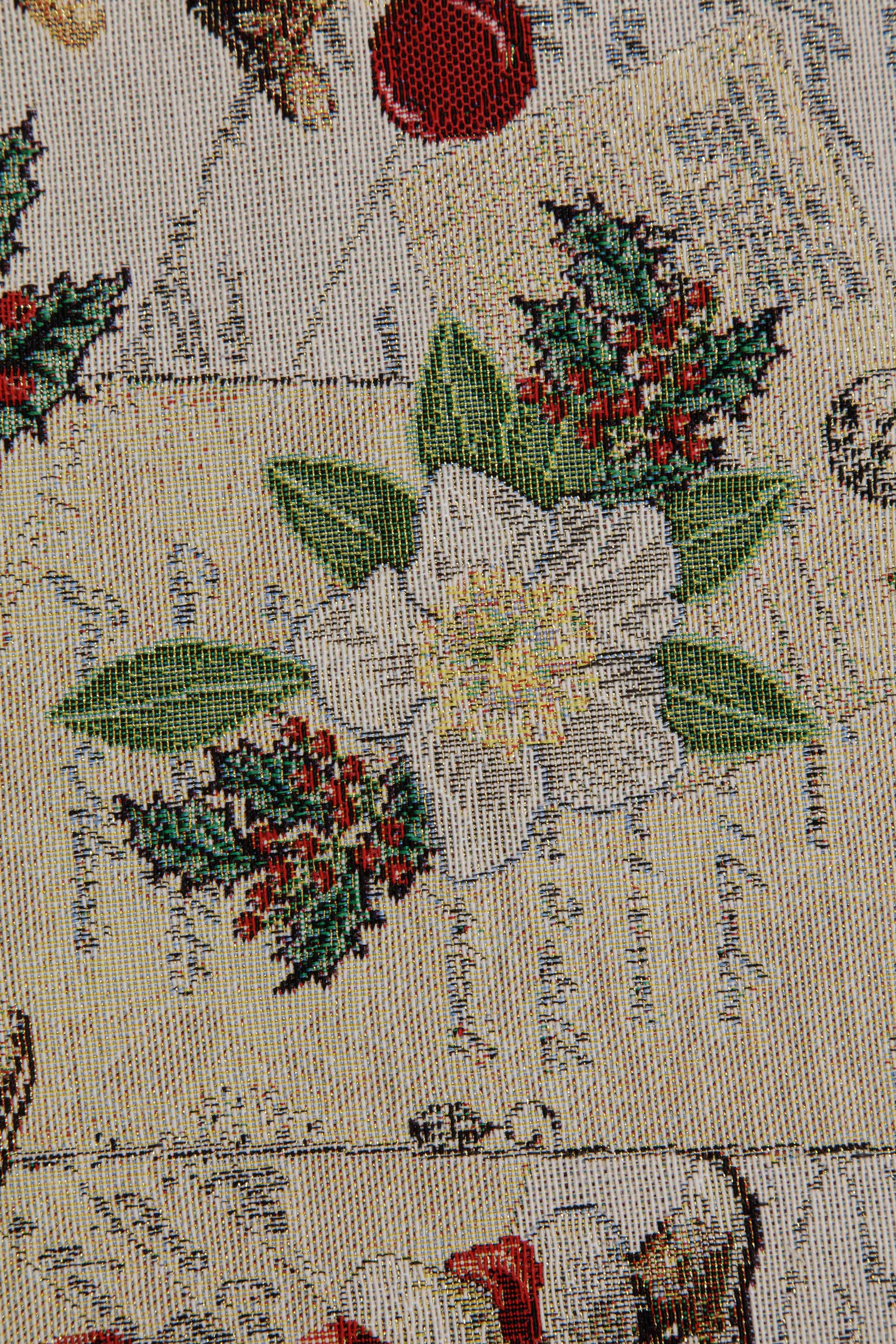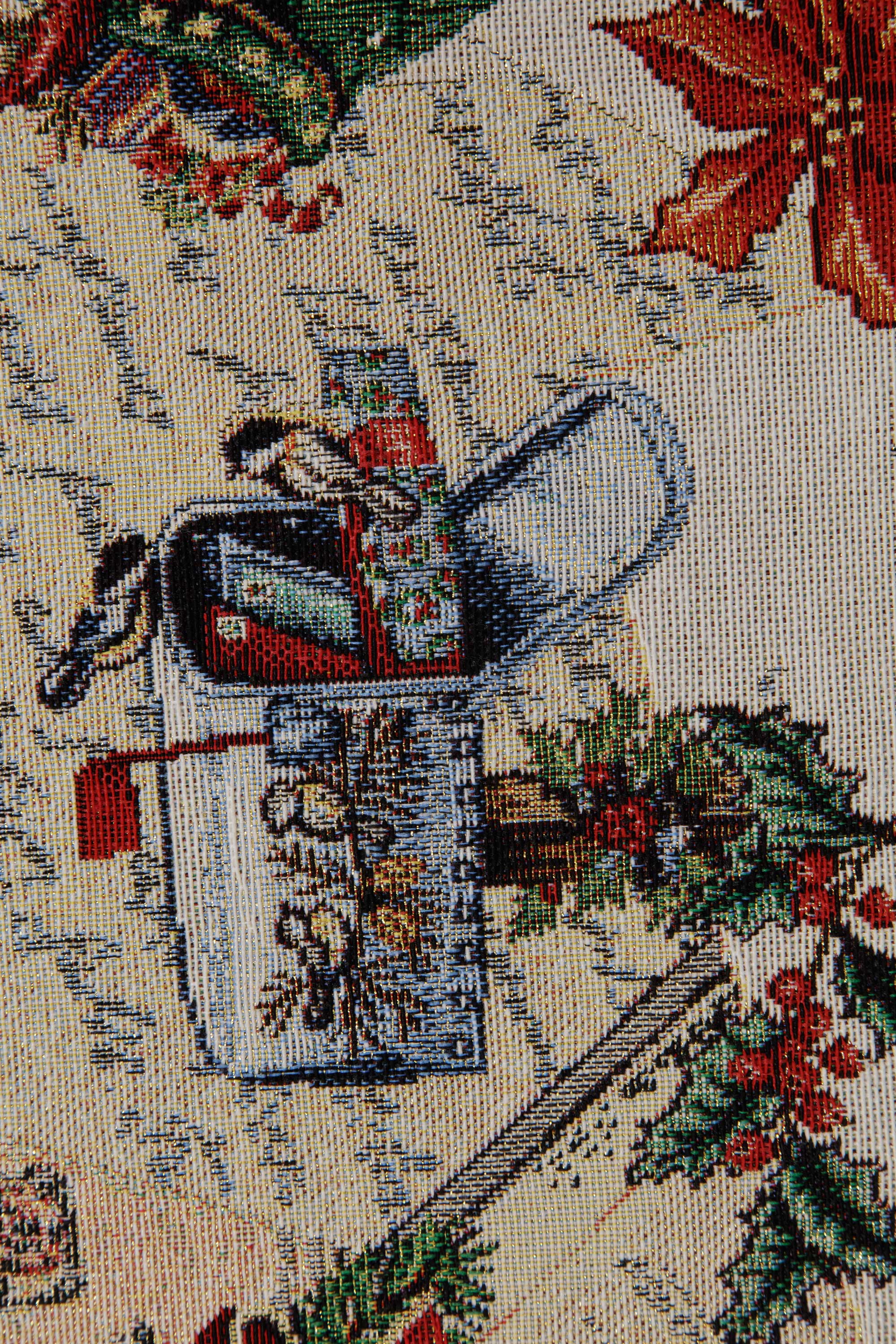 | History: | Infuse your table with holiday spirit using the Celeste series Christmas home décor. This elegantly designed table runner features a multi-directional pattern showcasing Santa Claus, gift-filled mailboxes, presents with bows, holly leaves, and Christmas trees. Interwoven gold threads add a festive sparkle, enhancing the celebratory essence of Christmas. This heartwarming décor brings elegance to your holiday dining experience, transforming your table into a centerpiece of joy and tradition. Celebrate the season with this delightful addition, making every meal a festive occasion. |