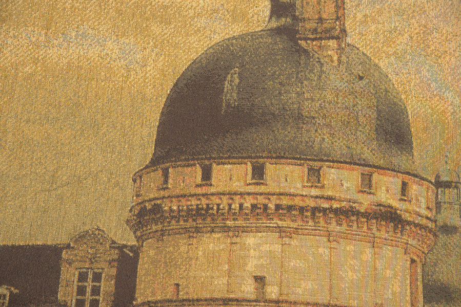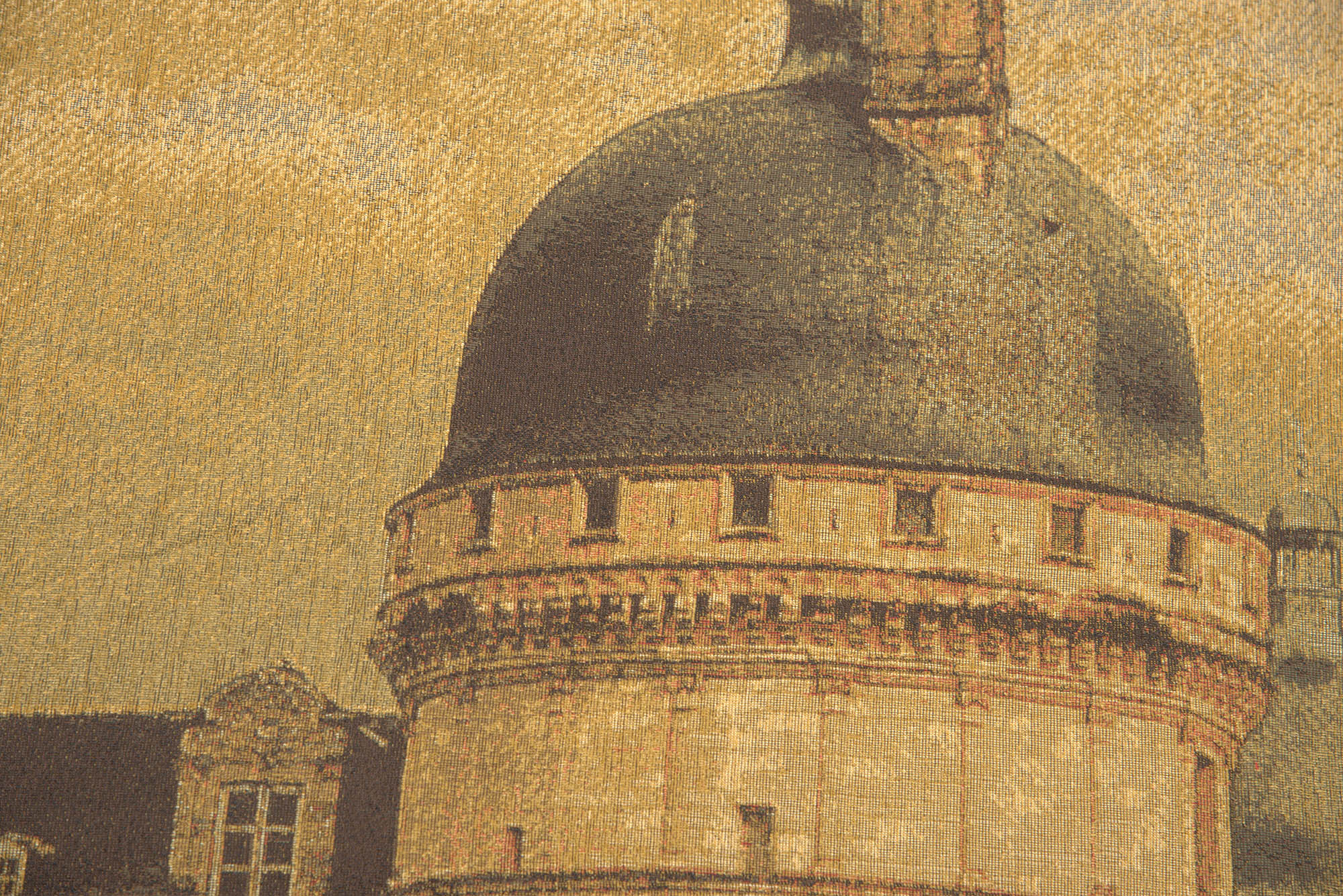 | History: | Chateau Valencay Belgian chenille tapestry features a chateau in the Valencay commune of France. This castle was called by George Sand, the lover of Frederic Chopin, as the "one of the most beautiful on earth". Here we see the chateau in its French Renaissance style, and its luxurious grounds and gardens on over 40 hectares which was much admired in its time. The castle was built in 1540 overlooking the Nahon river by the d'Estampes family and was finally completed over 200 years later. The round tower in the Western corner of the castle is constructed with a 'dome a l'imperiale' and elements reflecting the style of Chambord Castle. The interior has over 100 rooms which were some of the most advanced for its time. |