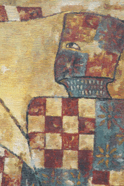 | History: | Chevaliers is a Belgian wall tapestry. This piece comes from a 13th century fresco from the church of St. Jacques-des-Guérets representing the departure of the Knights Templar to the second crusade (1146-1148). Here Thibaut de Montmorency caries the crest of the Bouchard family. A knight was a gentleman soldier or member of the warrior class of the Middle Ages in Europe. In other Indo-European languages, cognates of cavalier or rider are more prevalent (e.g. French chevalier and German Ritter) suggesting a connection to the knight's mode of transport. Since antiquity a position of honor and prestige has been held by mounted warriors such as the Greek hippeus and the Roman eques, and knighthood in the Middle Ages was inextricably linked with horsemanship. A fine accent to your home décor. |