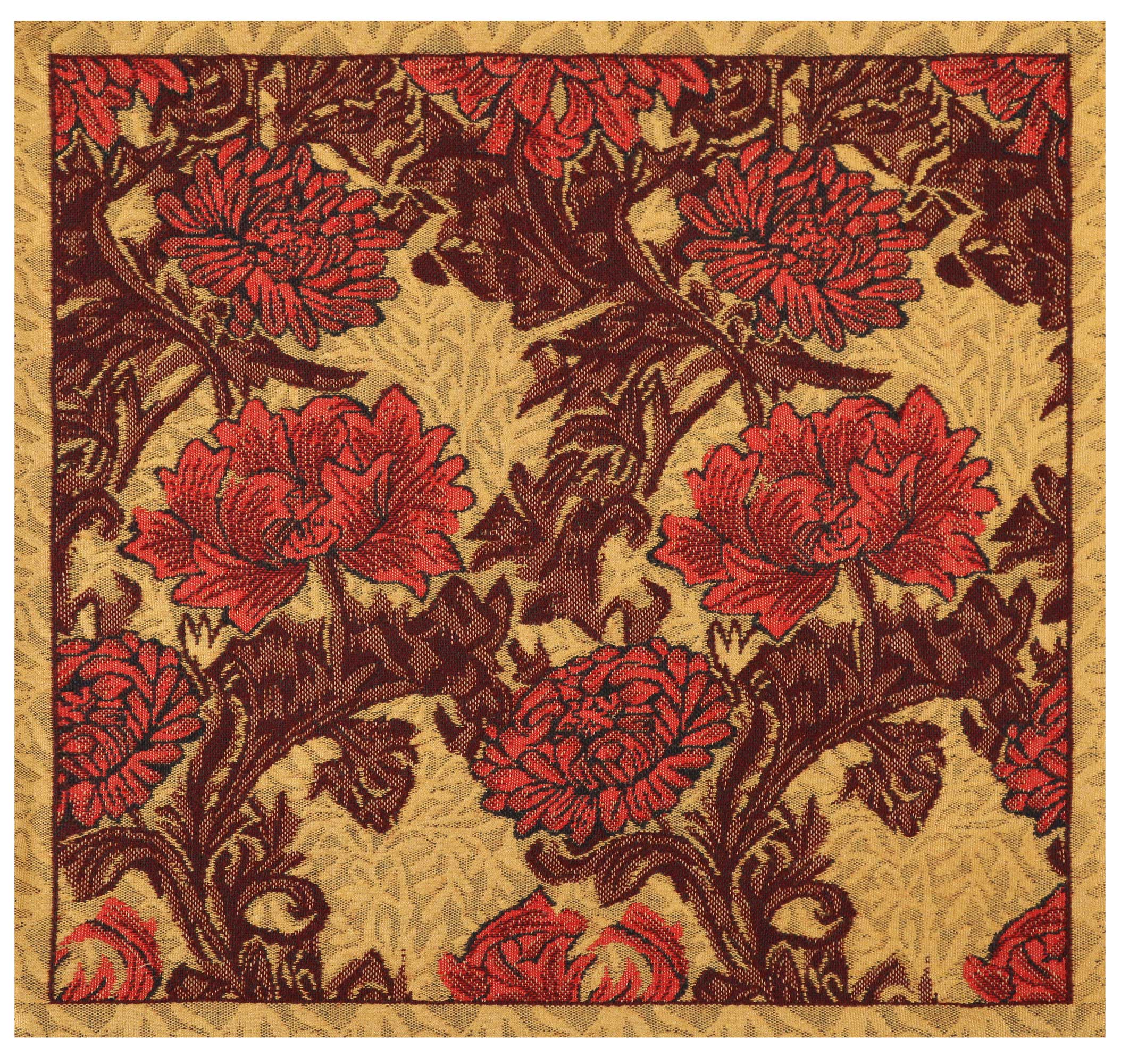 | History: | Inspired by 19th century “Tree of Life” tapestries by William Morris, our Chrysanthemum Bordo Tapestry Cushion Cover will bring a touch of history and floral elegance to your room. Besides being the birth flower of November, the chrysanthemum’s symbolize optimism and joy. The tapestry depicts the intertwining flowers rich in color and detail found in the artist’s body of work. This richly colored piece melds wonderfully with traditional style decors as well as with seasonally inspired decorating. You’ll enjoy the elegant beauty the tapestry cushion in any room. |