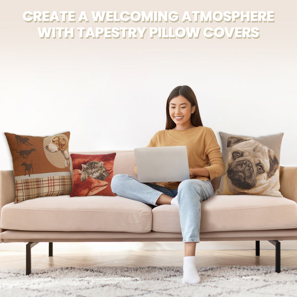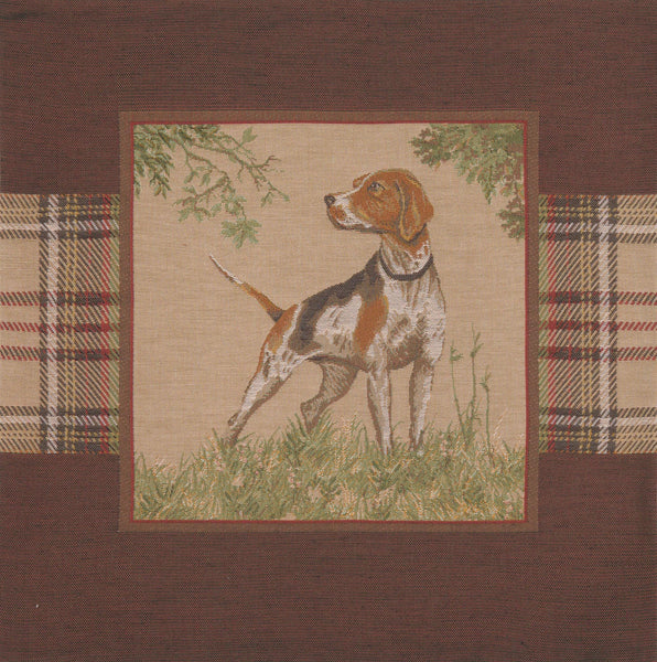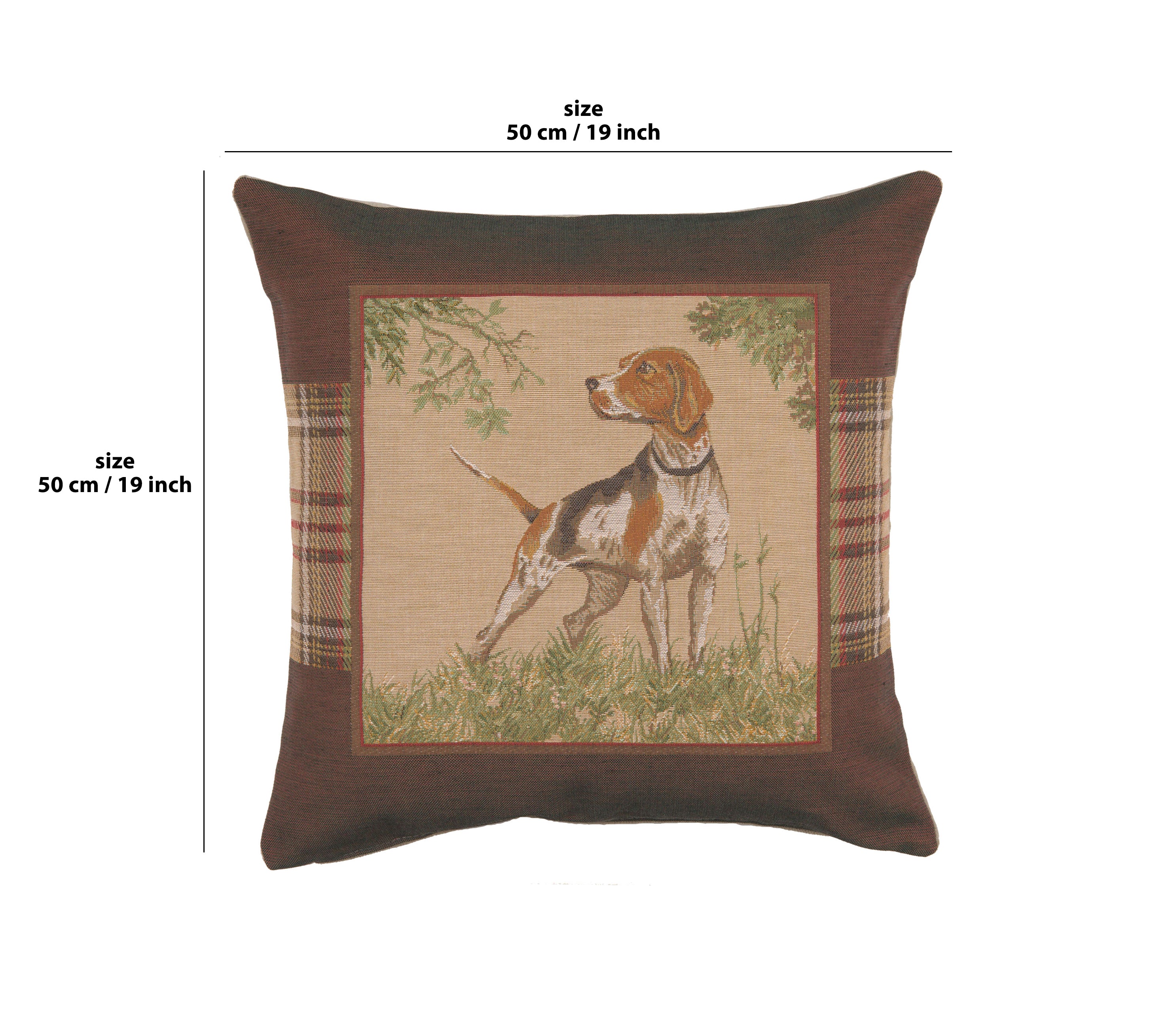 | History: | Dog Pointer is an artisan crafted European jacquard woven tapestry cushion cover displaying an English Pointer a favourite among hunting dogs. |