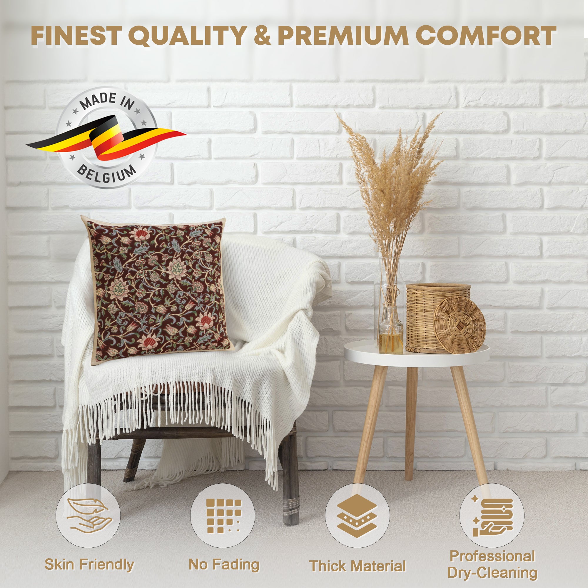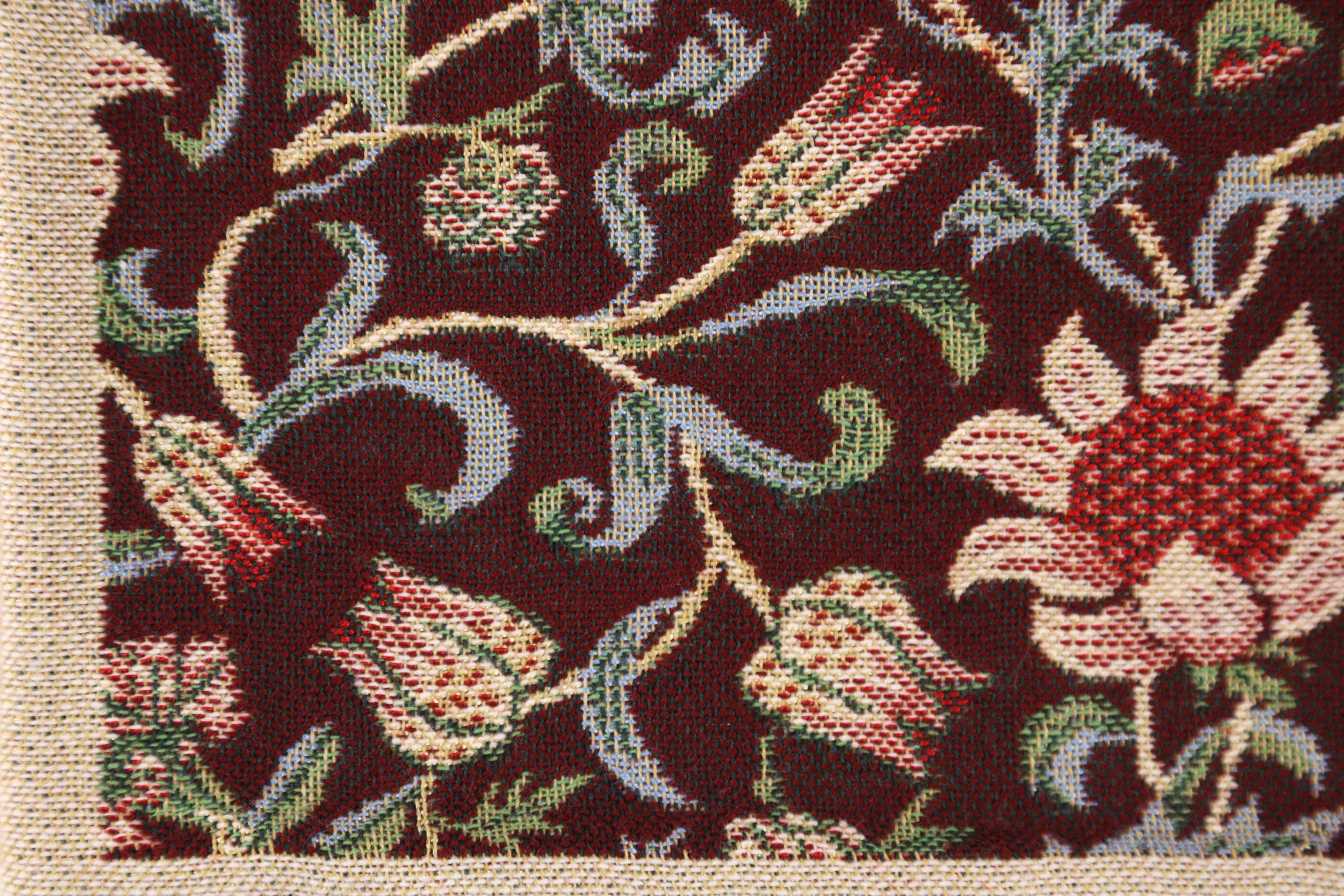 | History: | Fleurs de Morris Belgian tapestry cushion cover is inspired by the "Tree of Life" images by William Morris. Featured are the swirling flowers and leaves pattern classic to William Morris' work. |