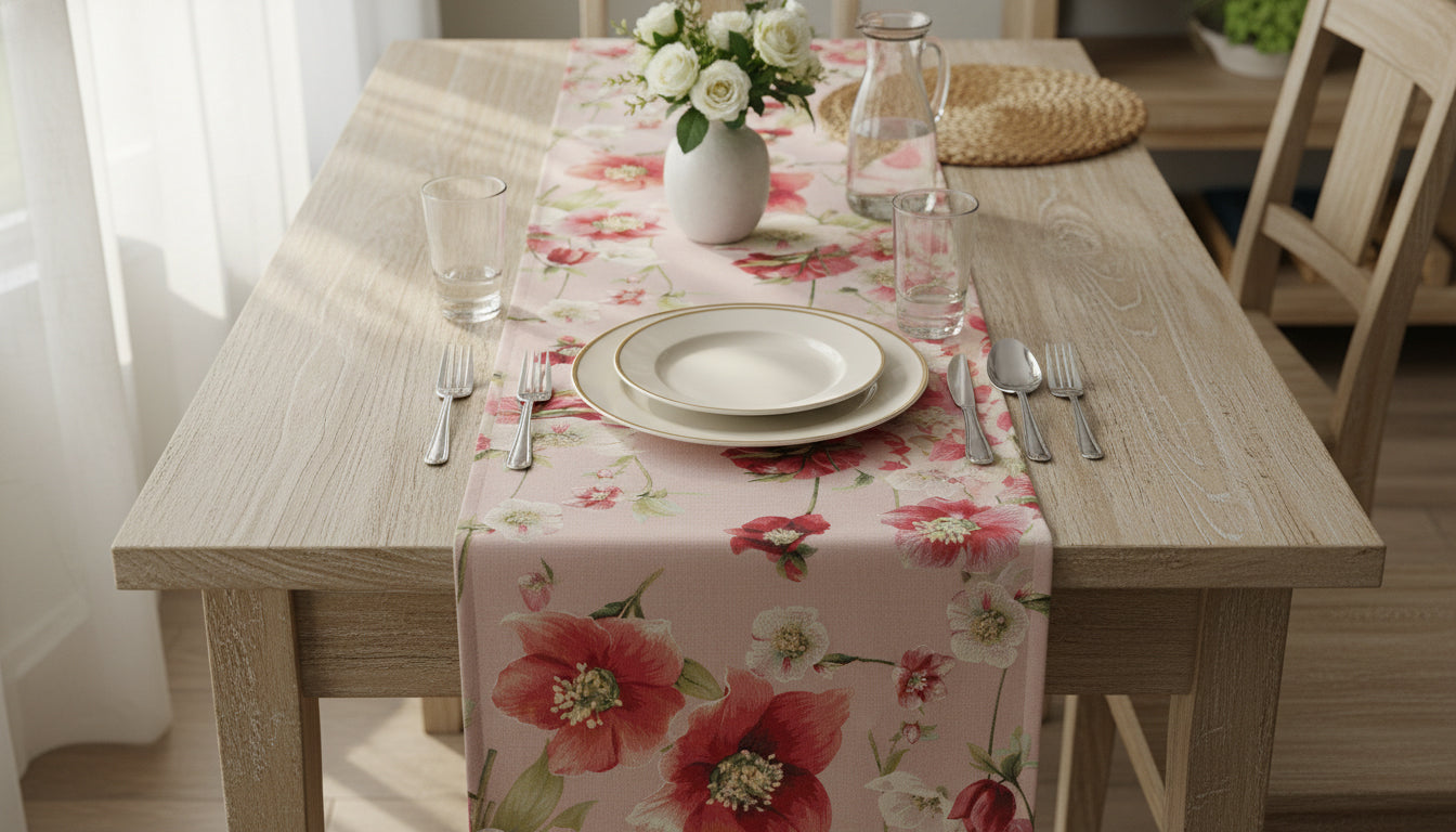 Hellebores Pink Runner French Tapestry Table Runner