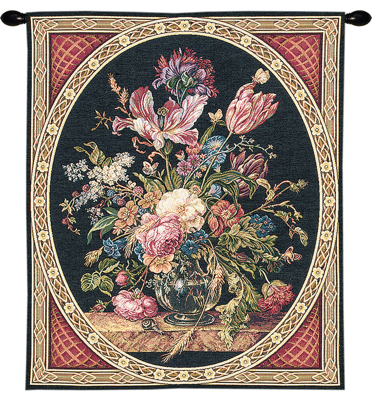 | History: | Jan Davids De Heem is a Belgian jacquard woven wall tapestry. The art is a rendering of a painting by Jan Davidszoon de Heem (1606 - 1684). de Heem was a Dutch still life painter who was active in Utrecht and Antwerp. He is a major representative of that genre in both Dutch and Flemish Baroque painting. |