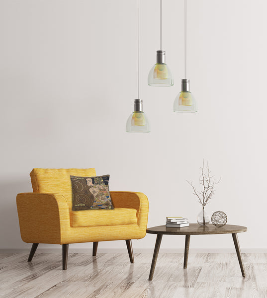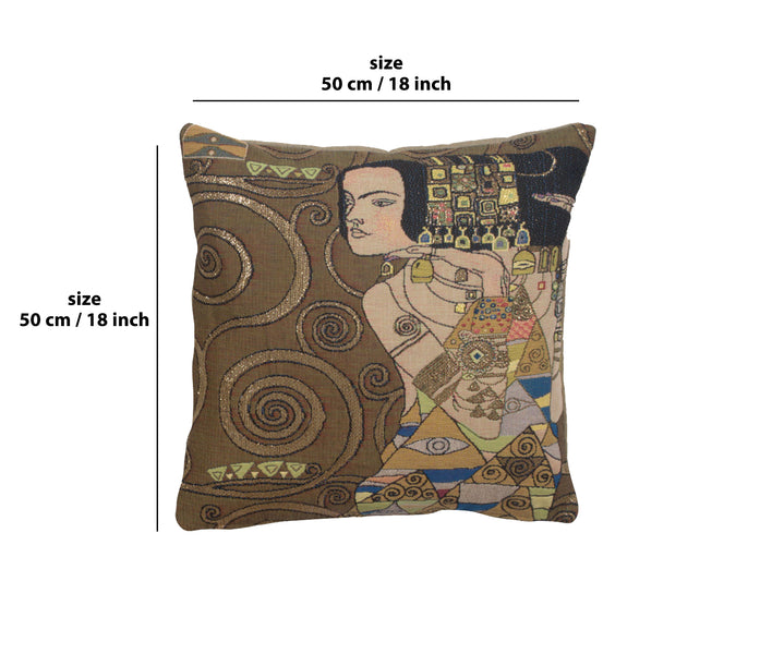 | History: | French fine art tapestry cushion cover inspired by the work of Gustav Klimt. Artisan jacquard woven elegance for your home. |