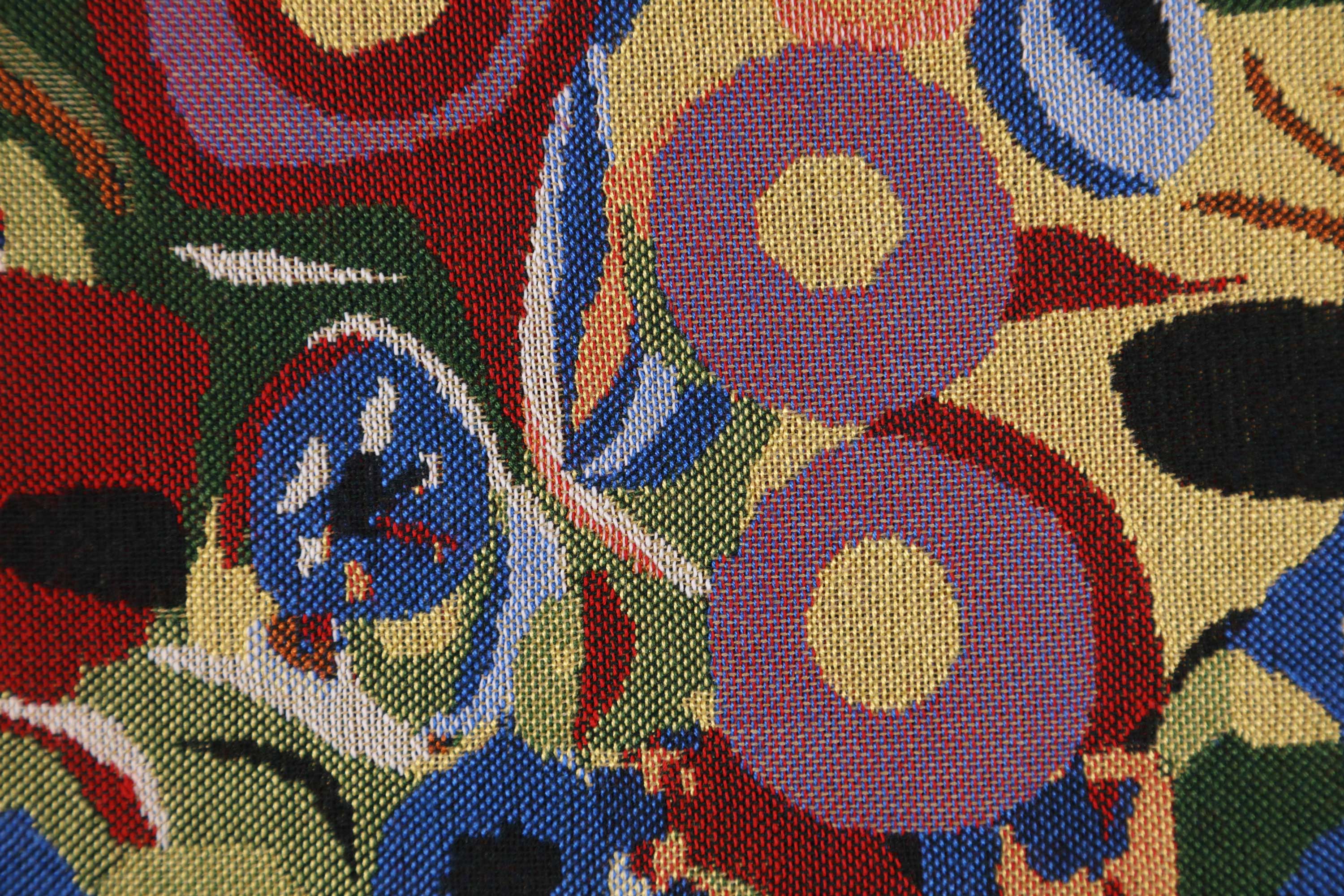 | Composition: | Cotton and viscose blend with gold thread embellishments. |