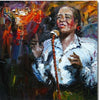 | History: | Loosely rendered and marvelously textured, this wall art of a lady singer expresses passion for music. Her expression and hand gestures hint that she is no novice, but rather an old hand in the trade. With rosy cheeks this lady sings the blues for an unseen audience that is sitting before her in the darkened room. |