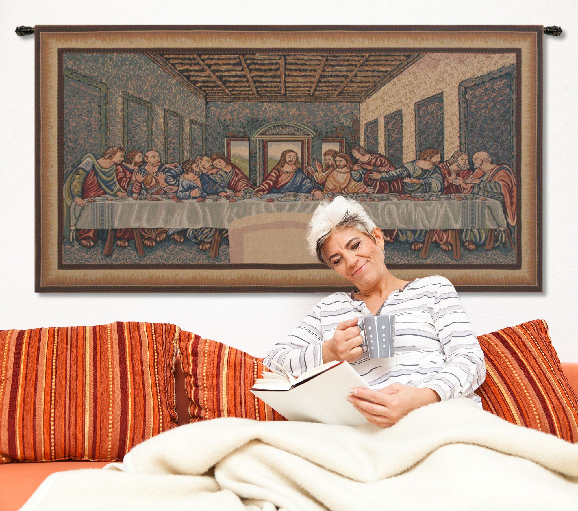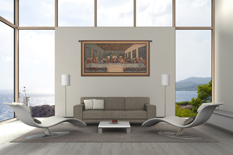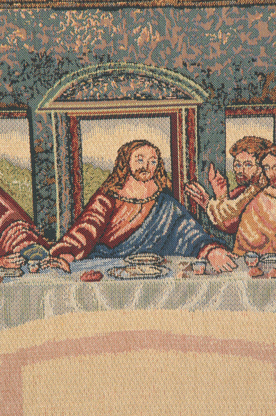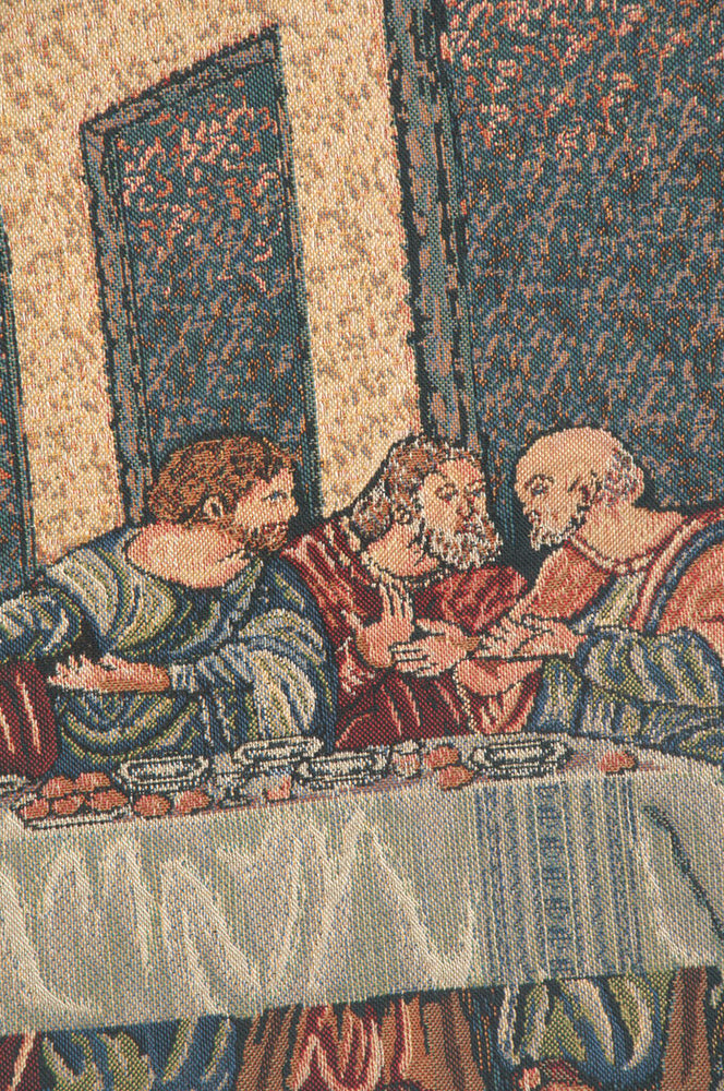 | History: | Last Supper II Belgian tapestry is based on the work of Leonardo Davinci. The Last Supper is a 15th century mural painting in Milan created by Leonardo da Vinci for his patron Duke Ludovico Sforza and his duchess, Beatrice d'Este. It represents the scene of The Last Supper from the final days of Jesus as depicted in the Bible. |