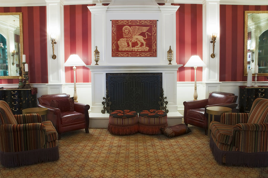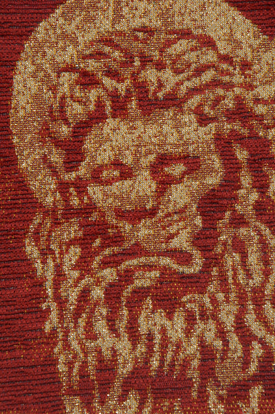 | History: | Leone Rosso is an Italian jacquard woven wall tapestry. This work depicts the Lion of Saint Mark, representing the evangelist St Mark, pictured in the form of a winged lion. This icon is the symbol of the city of Venice and formerly of the Republic of Venice. The Latin Phrase is an abbreviated form of the Venetian motto meaning: Peace to you, Mark, my Evangelist. Here your body shall rest. |