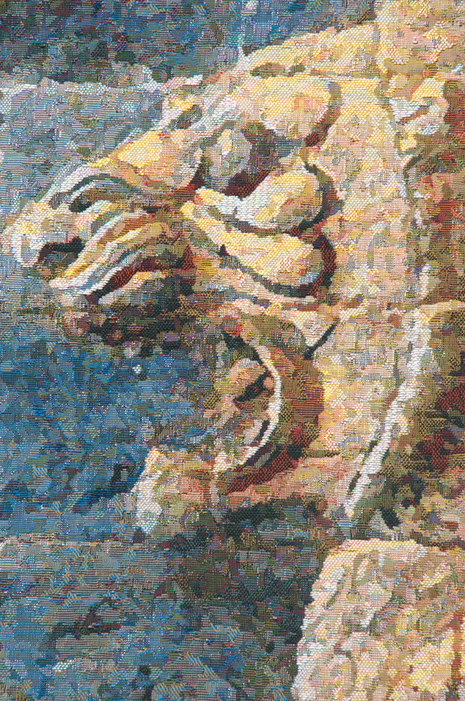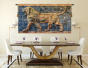 | History: | Lion I - Darius is a Belgian made jacquard wall tapestry. This image is a reproduction of a frieze from the Palace of Darius I of Persia, dating from circa 510 B.C.E. His palace was inspired by that of King Nebuchadnezzar II in Babylon's Ishtar Gate. The Ishtar Gate was a magnificent creation constructed at about 575 BCE by order of King Nebuchadnezzar II. The gate protects the ancient city of Babylon and is made from lapis lazuli, the semi-precious blue stone found in ancient Mesopotamia. A parade of animals is seen in the work, including the lion, winged bulls and dragons. Part of Mesopotamia, and built upon the Euphrates, the city of Babylon and its gates is a wonder of architecture and history. A stunning piece of Babylonian & Persian history recreated for your home, office, or study. |