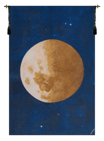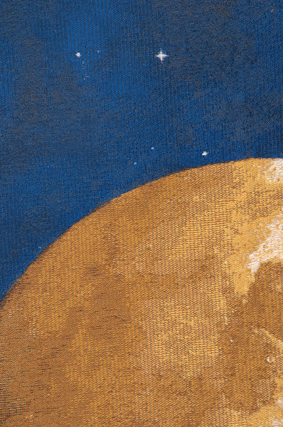 | History: | Lune is a Belgian woven fine art jacquard wall tapestry. It depicts a richly detailed full moon on a blue-black starlit sky in the background. The artwork comes from a painting made by a French artist, E. Noirmain (2008), who is living in Paris. The perfect accent to your home decor. |