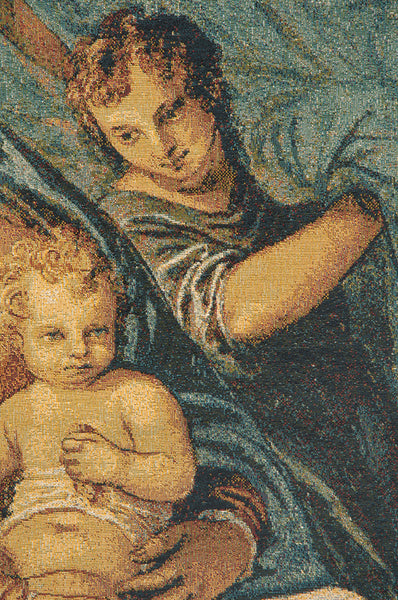 | History: | Madonna della Pappa is an Italian jacquard wall tapestry. The artwork comes from a painting of the same name completed in 1561 by Paolo Veronese (1528 – 1588), an Italian Renaissance painter based in Venice. |