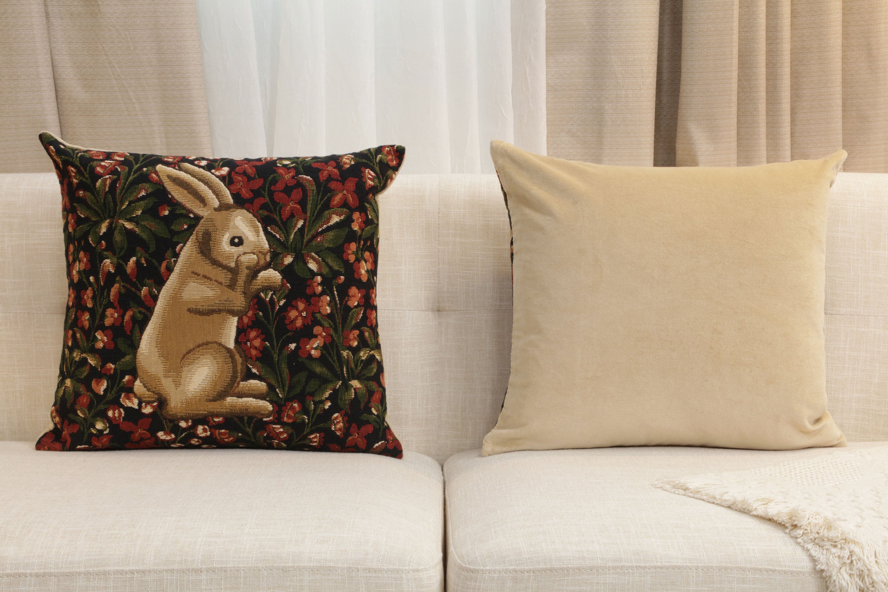 Medieval Rabbit with Flowers Standing European Cushion Cover