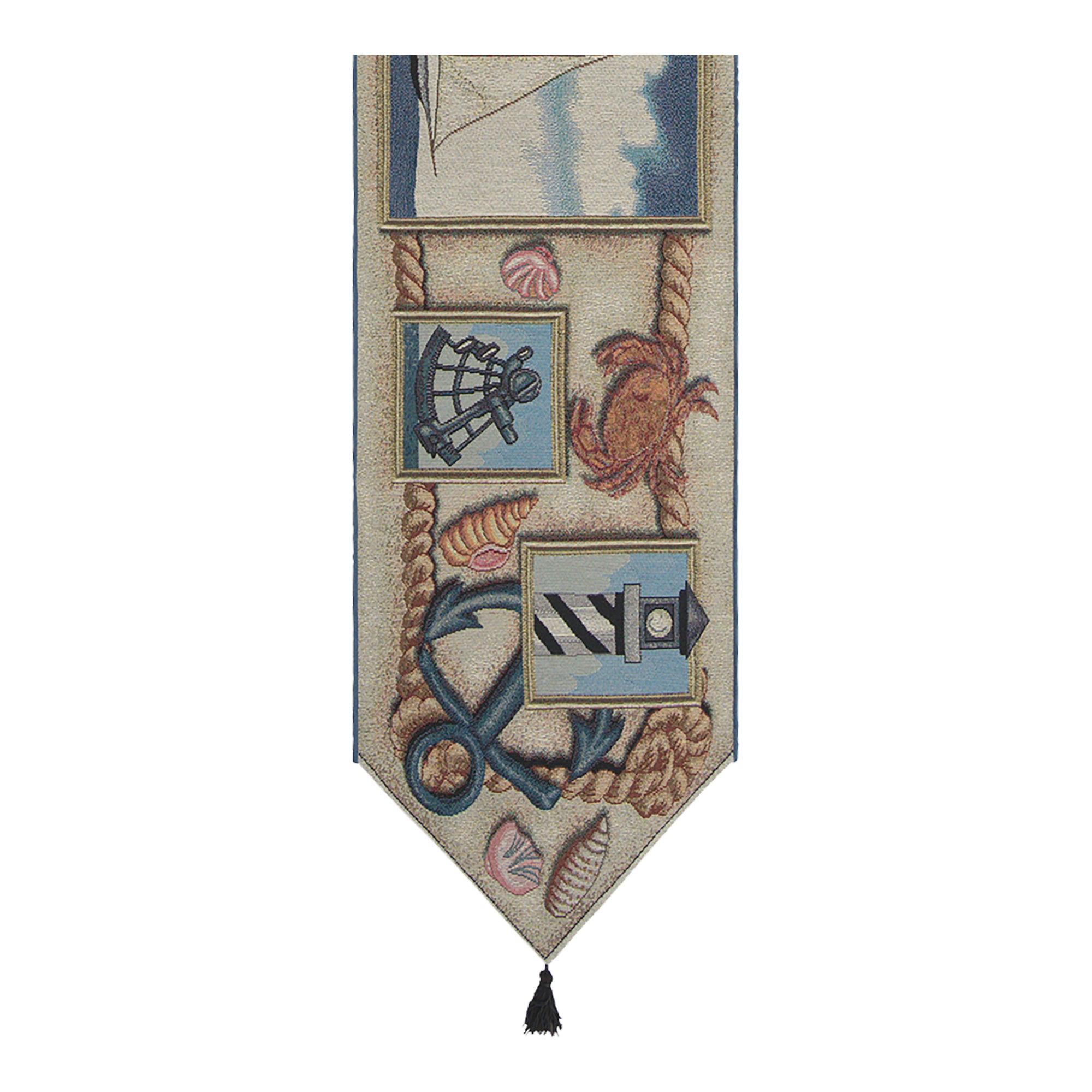 Nautical Scene III Black Tassels Tapestry Table Runner