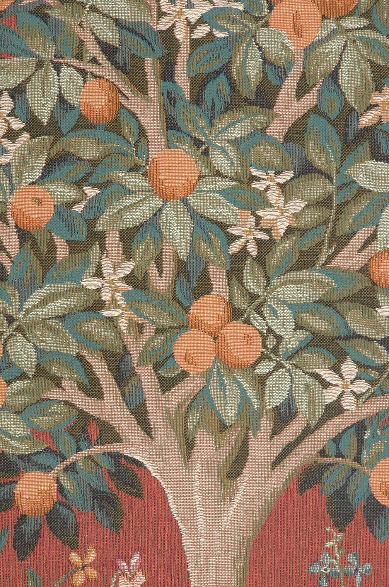 | History: | Oranger Medieval Tree is an extract of the major piece of the Dame à la Licorne, or Lady and the Unicorn, tapestry set at the Cluny museum. This wall tapestry is an orange tree hosting rabbits; the red background is filled with flowers. |