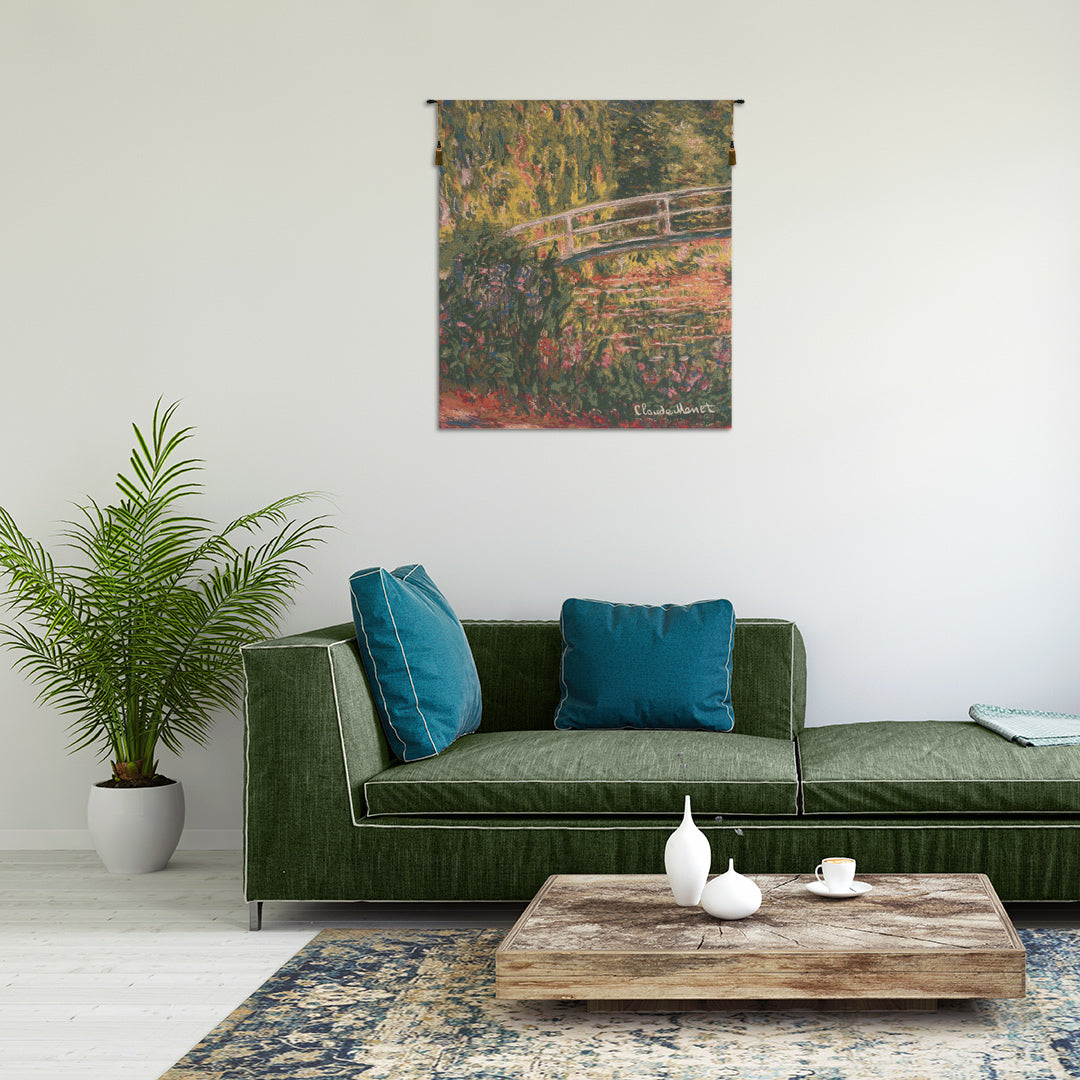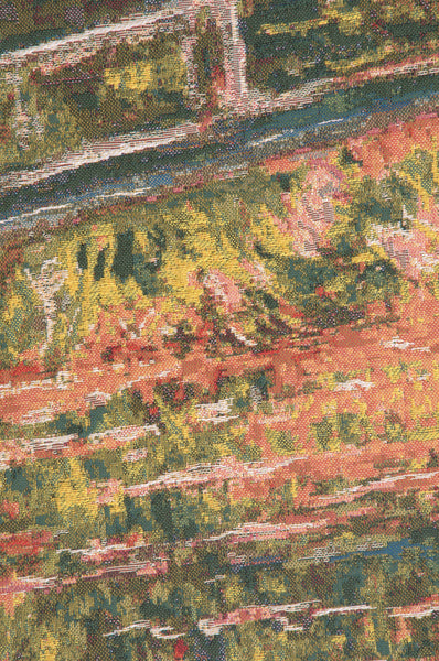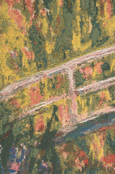 | History: | Pont Japonnais, or Japanese Bridge, is a jacquard wall tapestry woven in Belgium based on the painting by Claude Monet, The Japanese Bridge at Giverny. Monet painted many scenes from his home at Giverny which sits on the right bank of the River Seine where the river Epte meets the Seine. In this work Monet retained a subtle linear perspective channeling the eye into depth; conserving a characteristic of naturalistic painting where the picture plane is conceived as a window through which one looks at a view. |