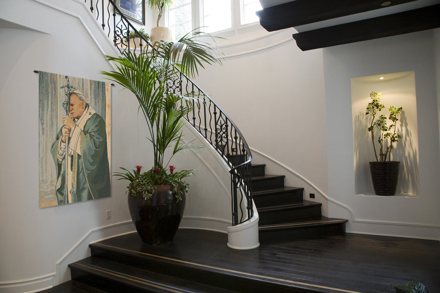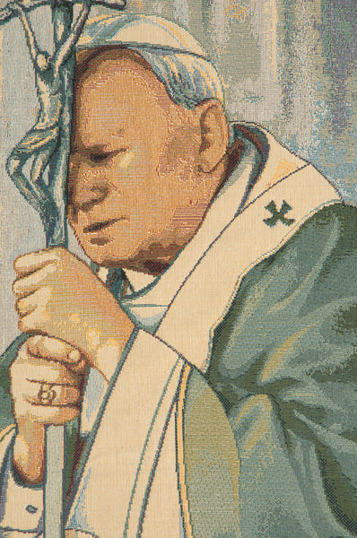 | History: | Pope John Paul II is an Italian jacquard wall tapestry. It depicts Pope John Paul II in prayer He was elected by the second Papal conclave of 1978 and served as Pope until his death in 2005. In the years since his death, John Paul II has since been made a saint by the Church. John Paul II is recognized as helping to end Communist rule in his native Poland and eventually all of Europe and for significantly improving the Catholic Church's relations with Judaism, Islam, the Eastern Orthodox Church, and the Anglican Communion. |