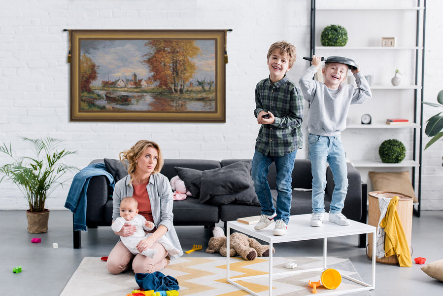 Riverside Flemish Village Belgian Tapestry Wall Hanging