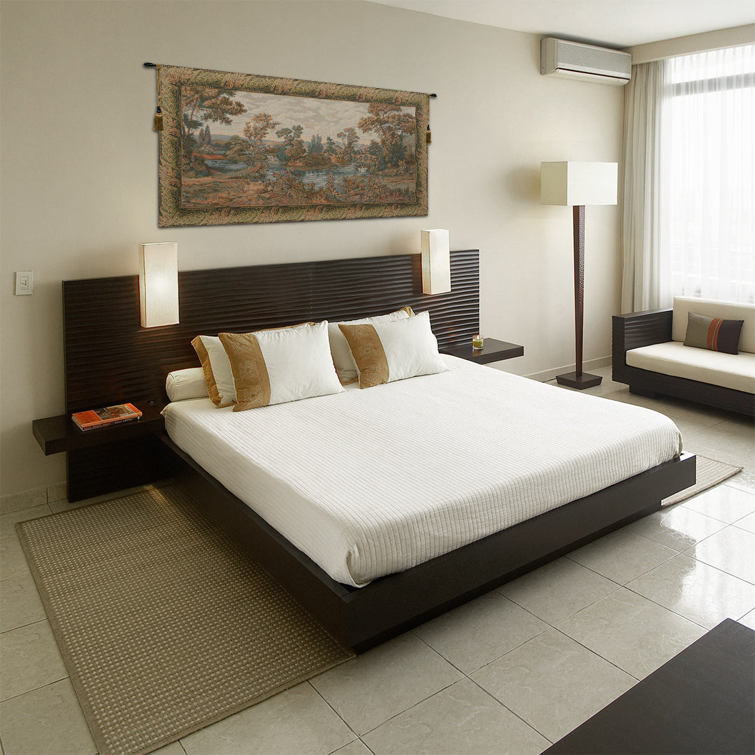Swan in the Lake Large with Border Italian Tapestry Wall Hanging