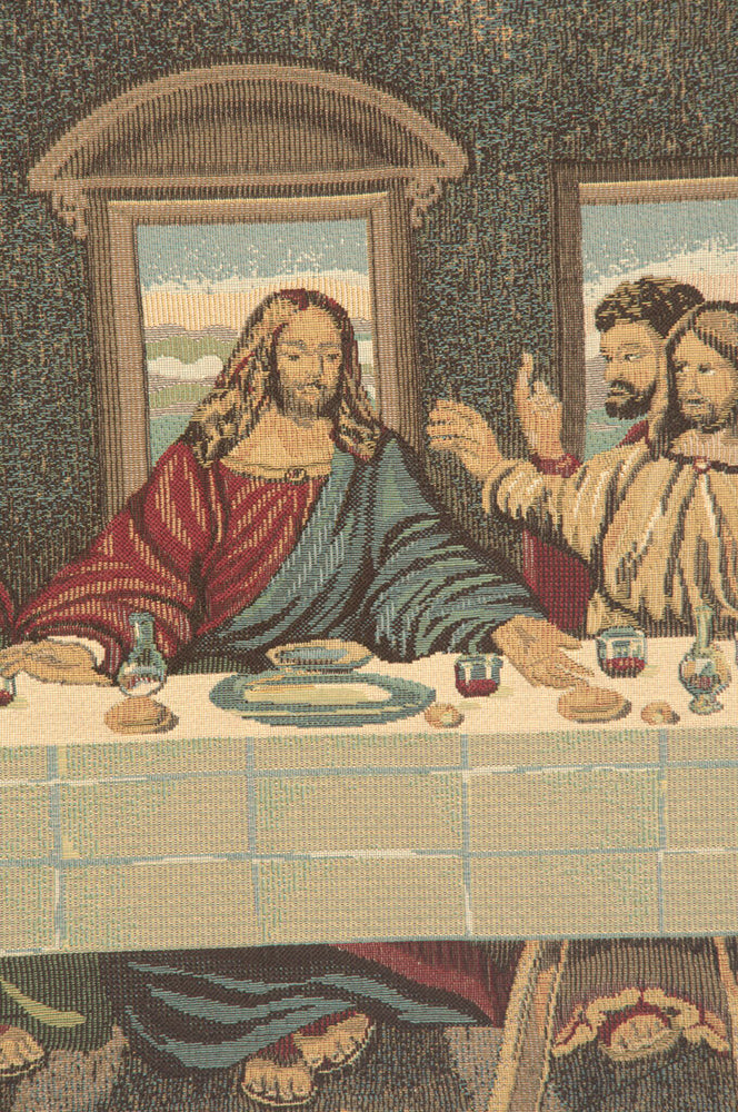 | History: | Last Supper European tapestry is based on a 15th century mural painting in Milan created by Leonardo da Vinci. The Last Supper is the final meal that, in the Gospel accounts, Jesus shared with his Apostles in Jerusalem before his crucifixion. The Last Supper is commemorated by Christians especially on Maundy Thursday. Moreover, the Last Supper provides the scriptural basis for the Eucharist also known as Holy Communion or The Lord's Supper. |