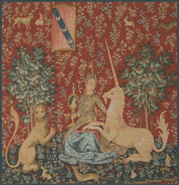 | History: | This jacquard cushion case is an extract of the tapestry series "The Lady at the Unicorn", it’s named “the Sight”. |