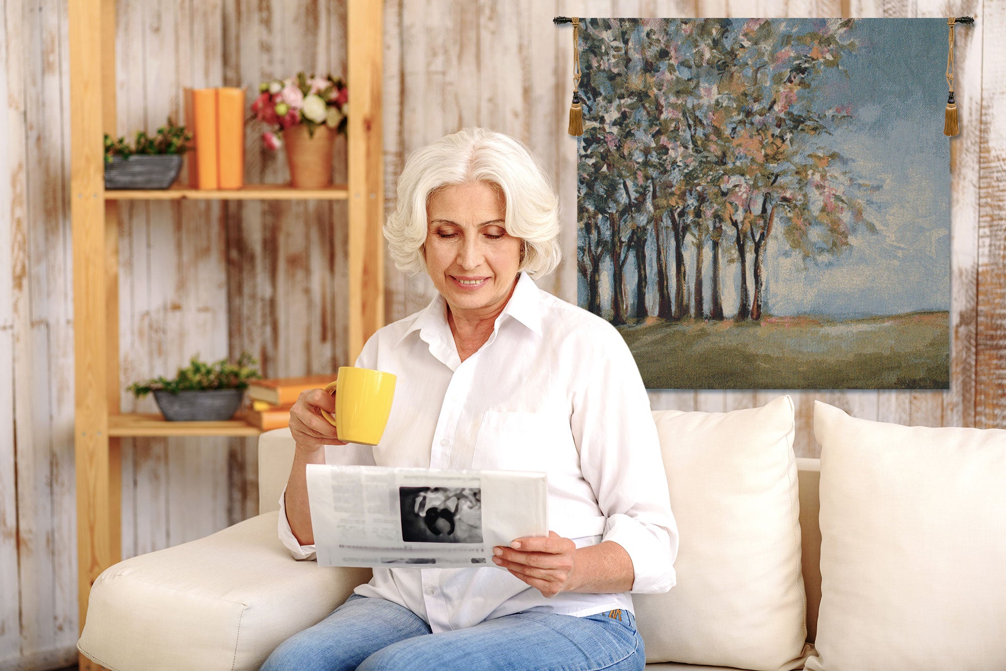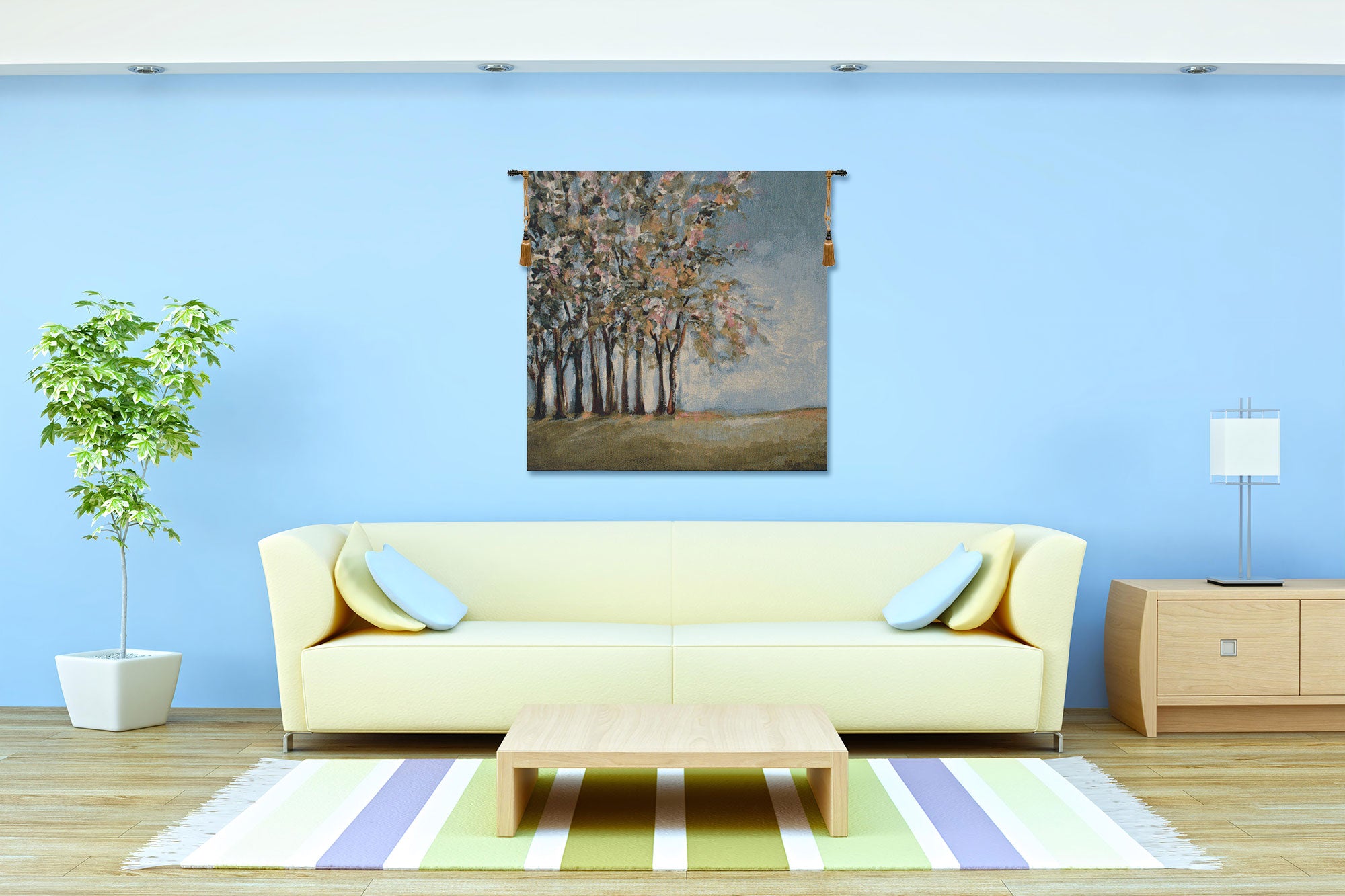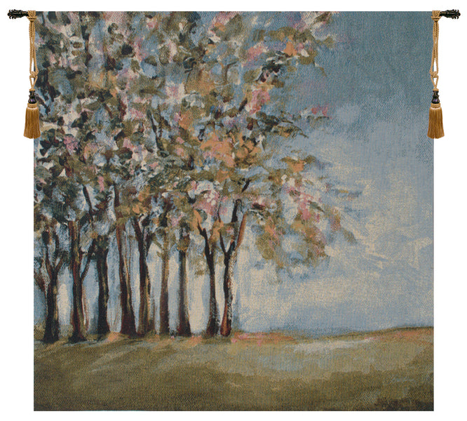 | History: | Tree in Spring tapestry features a handpainted look. This tapestry depicts a scene of a clear blue sky with a row of spring colored trees underneath. |