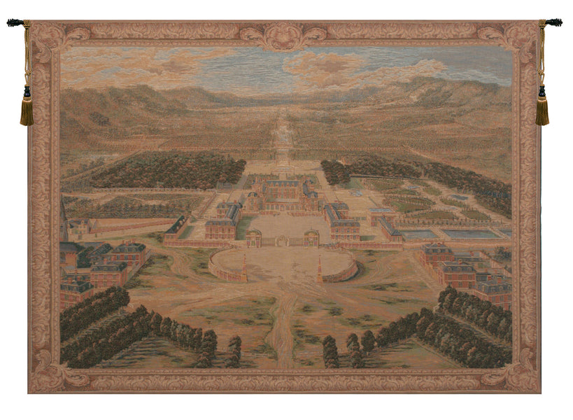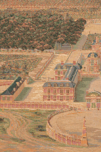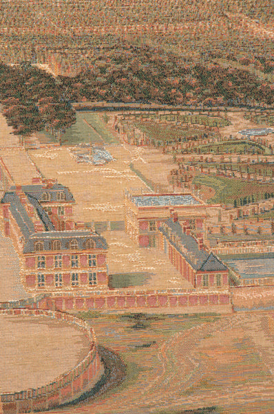 | History: | Versailles Castle XVII depicts a view of Versailles from the Avenue de Paris (c. 1662) as it looked prior to its expansion by Louis XIV. The design of this jacquard wall tapestry is inspired from a painting by Pierre Patel (1605-1676). This impressive view from Verssailles' castle and gardens would be the oldest representation of the abode. |