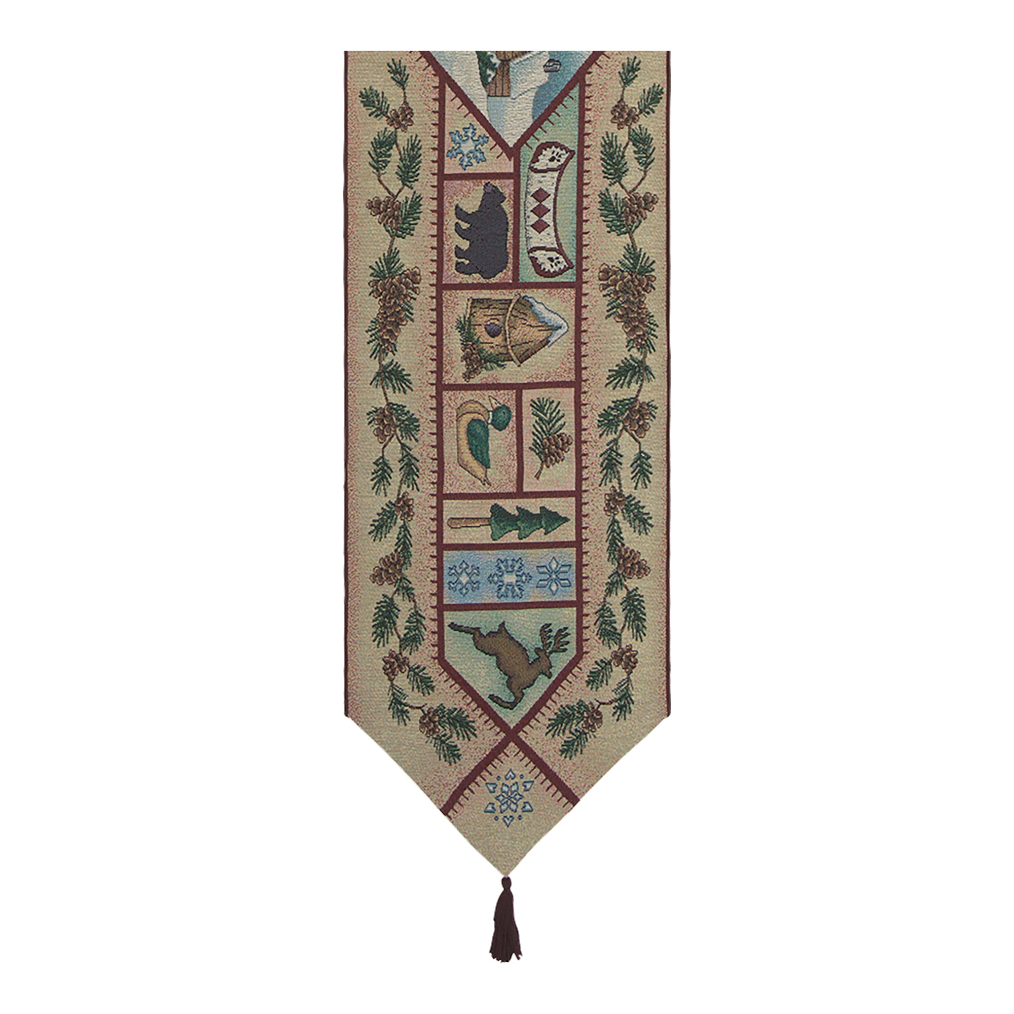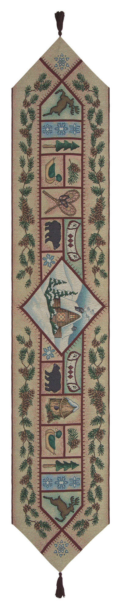 Winter Lodge with Red Tassels Tapestry Table Runner