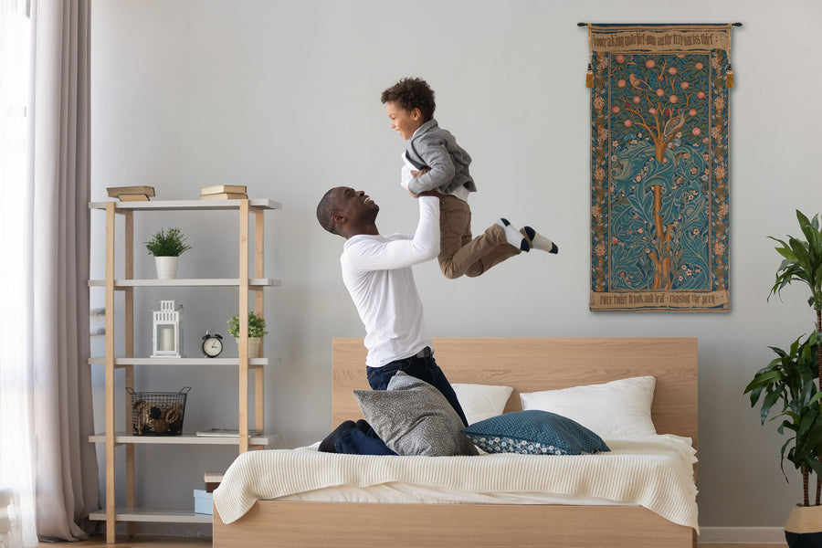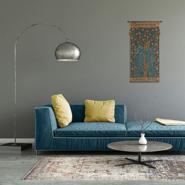 | History: | Woodpecker with Verse was designed in 1885 by William Morris and based on his poem about Picus, the Italian King who was transformed into a woodpecker in Ovid’s Metamorphoses, Book XIV. This classical work was the one of the most read books in the Middle Ages. This stunning decorative fine art French impressionist wall tapestry is also known as The Woodpecker, with parchment. William Morris, the famous English artist, poet, and socialist, has designed many fabrics and tapestries of world renown many of which now reside in the world's most prestigious museums. A marvelous addition to your home décor motif. An ideal piece to add to your home décor collection. |